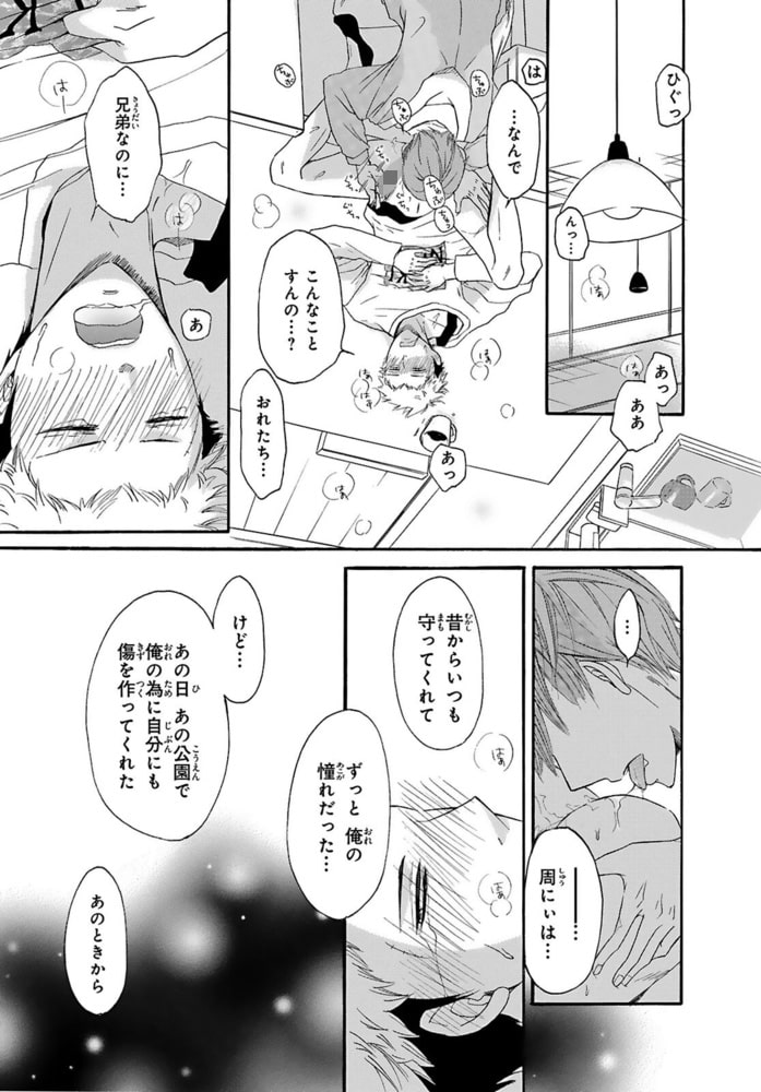 『義弟の渇望~兄の俺を玩具でイかせてしおを●かせて~』3~5話を収録したR18合冊版!可愛がっていた、俺が守ってやらないとと思っていた。そんな弟に組み敷かれ縛られ、ア●ルを開発されてしまい――。ヤンキーの周人と優等生の天馬は、全てが正反対だが仲の良い義兄弟。そだったはずなのに…泣いていた兄をみた瞬間、天馬の中で何かが壊れ、兄を抑えつけ無理やりしゃぶりだす天馬。更に、ア●ルを弄り始め!?痛がり必死に抵抗する兄に「痛そうだったから、これ。」と持ってきた電マを押し当て!与えられたことの無い振動に快感が全身を走り、吹きだすしおに頭が飛び…義弟に処女を奪われ、兄としての威厳もプライドもへし折られ――。