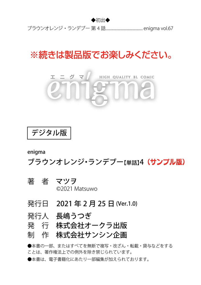 【本作はWEB雑誌「enigma」に収録されています。重複購入にご注意ください。】