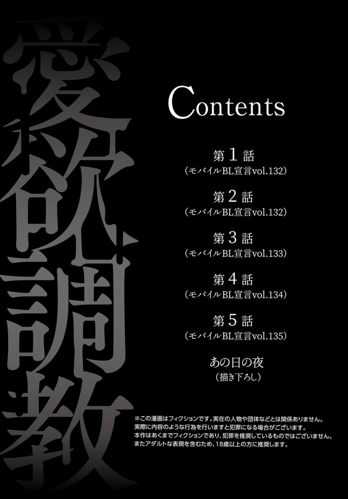 【こちらは話売り『愛欲調教』R18版1~5話を収録した単行本の電子版になります。】「先輩を理解出来るのは俺だけだ」水泳選手として将来を有望視されていた浅葱颯。だけどとある事故により人生どころか性格も変わってしまい、今は事故の原因となった従順な後輩・六条櫂人に性的な命令をして憂さ晴らしをする日々。しかしそんな扱いを受けても尚、自分を擁護する櫂人に良心が痛んだ颯は、これまでの非を詫び「櫂人の好きにしていい」と口にすると…“先輩を調教する”と宣言され――!?命令“される側”から“する側”になり豹変した櫂人から、未知の刺激を沢山教え込まれ、櫂人無しではいられない体にどんどん作り替えられていく――…