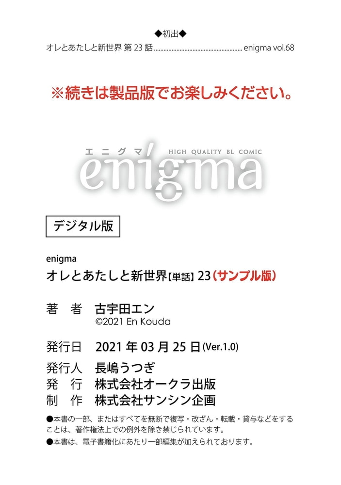 【本作はWEB雑誌「enigma」及び、enigmaコミックス「オレとあたしと新世界」に収録されています。重複購入にご注意ください。】