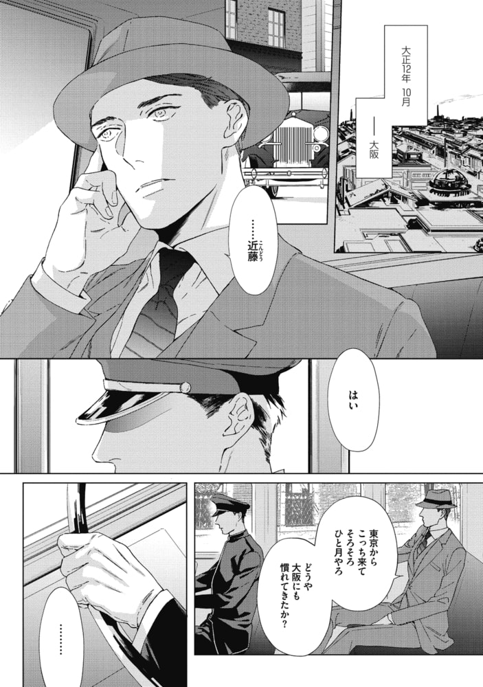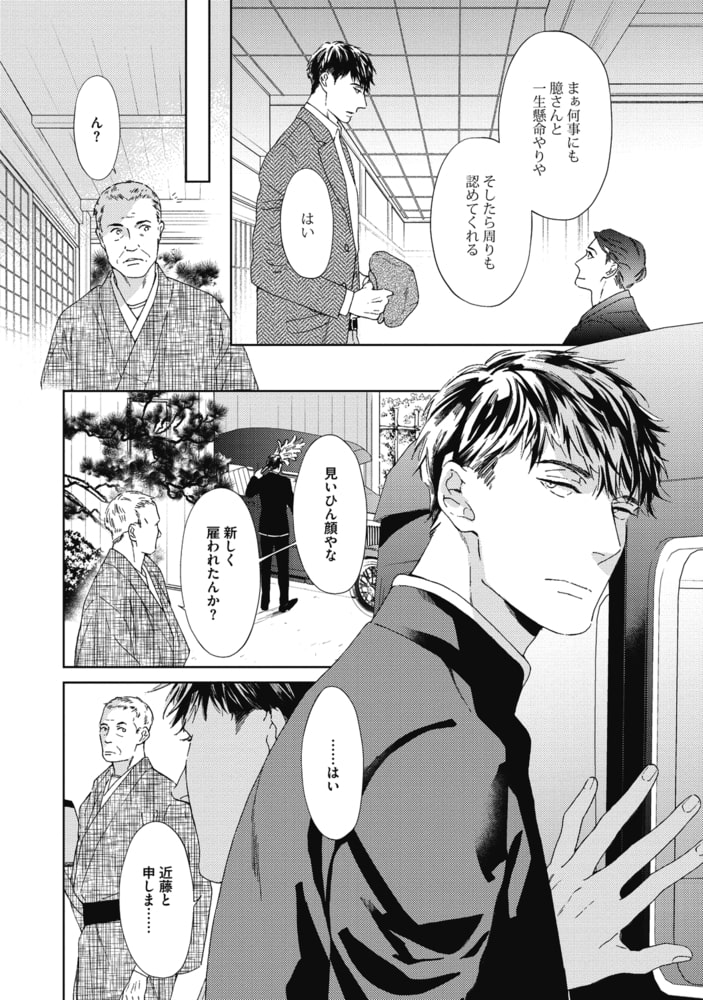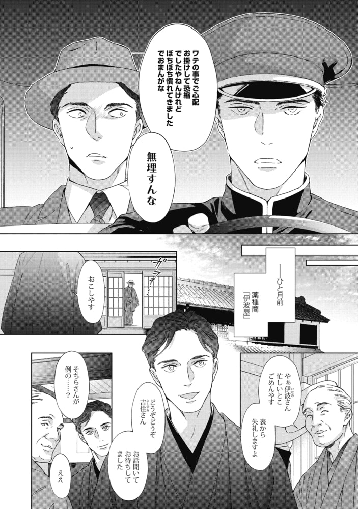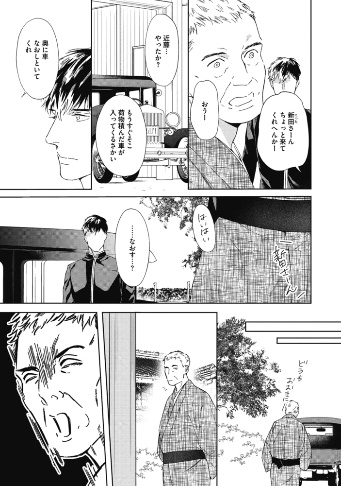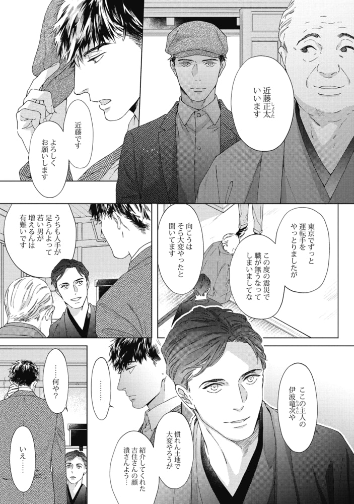 薬種商「伊波屋」の若旦那・竜次は、運転手としてやってきた近藤の素直さを気に入り、そばに置くことに。そんなある日、近藤の日記を盗み見てしまった竜次は、自分に向けられた熱情を知ってしまう。ところが、本人に知られたというのに近藤の全く変わらない態度に竜次の方が意識し動揺してしまって…?