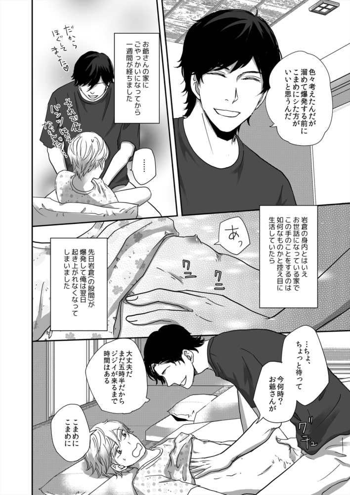 家も仕事も失い、逃げた元嫁の借金返済のためゲイビ出演するハメになった宇野。あまりな転落人生に絶望しかない…と嘆いていたら、寸でのところでかつての親友・岩倉に助けられる。窮地を救ってくれたうえに居候までさせてくれて、男前な良いヤツ…と思っていたある夜。寝ぼけた岩倉にキスされて思わず勃起!?ただの友人なのに反応しちゃって、居た堪れず一人で抜こうとしたら何故か「逃がさねーっての」と抱きしめられて。硬く尖った乳首をしゃぶられて、未開発なお尻をグリグリ可愛がられたら泣いちゃうくらいキモチよくなってしまい――。オトナになって再会した親友にズブズブに甘やかされて、男同士なのに…このままイかされちゃう!?