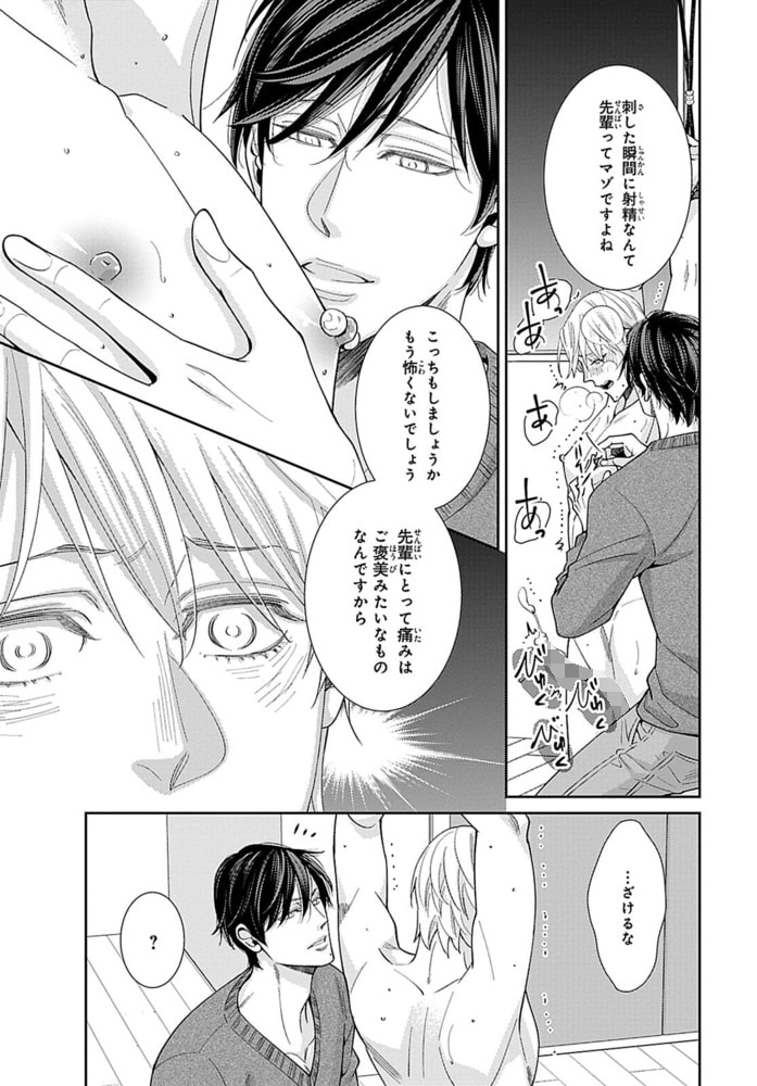 『愛欲調教』』R18版3~5話を収録した合冊版!「俺の形をここで覚えてくださいね」信頼していた後輩から突然の調教宣言!?淫らに変えられていく体は止まらない――…。事故により性格も人生も全て変わってしまった颯のストレス発散方法は、事故の原因と言われている後輩・櫂人に性的な命令をすること。ある日、櫂人が自分のことを庇っている場面を見てしまう。これまでの行いを謝罪することに決めた颯だったが、櫂人から「先輩を調教する」と迫られ…!!薬を飲まされ目を覚ますと、既に櫂人の調教は始まっていて!?我慢できずにお漏らししてしまい…興奮した体は、どんどんと櫂人を受け入れていき――。“先輩を理解できるのは俺だけ”強い執着愛からはもう逃げられない…。