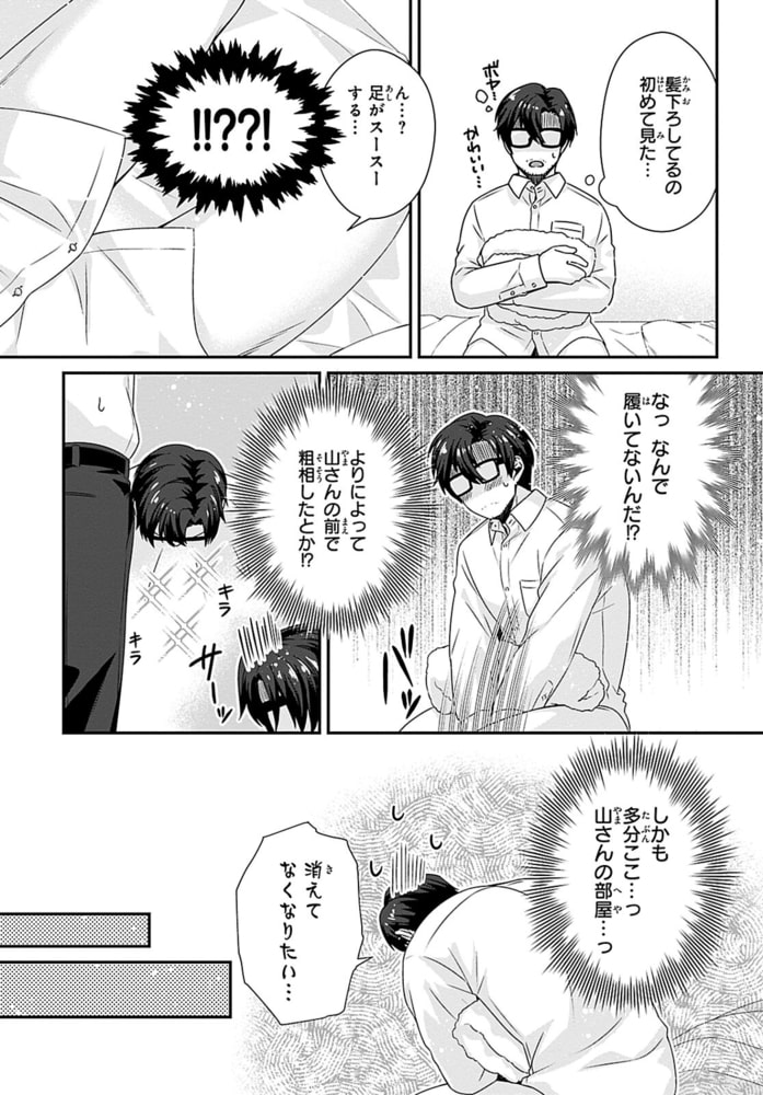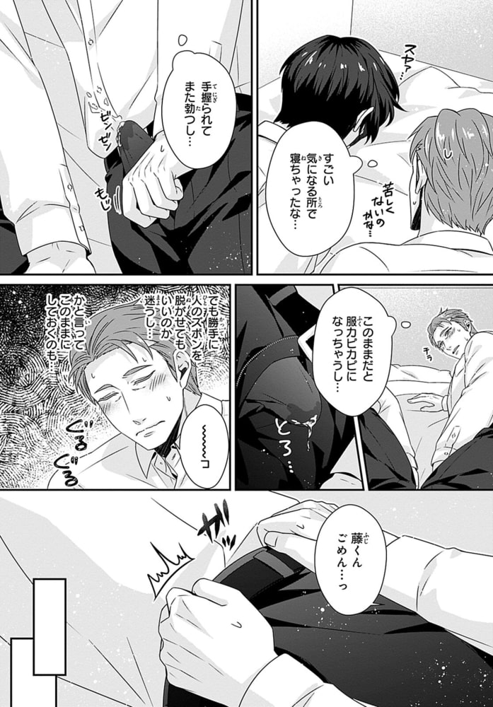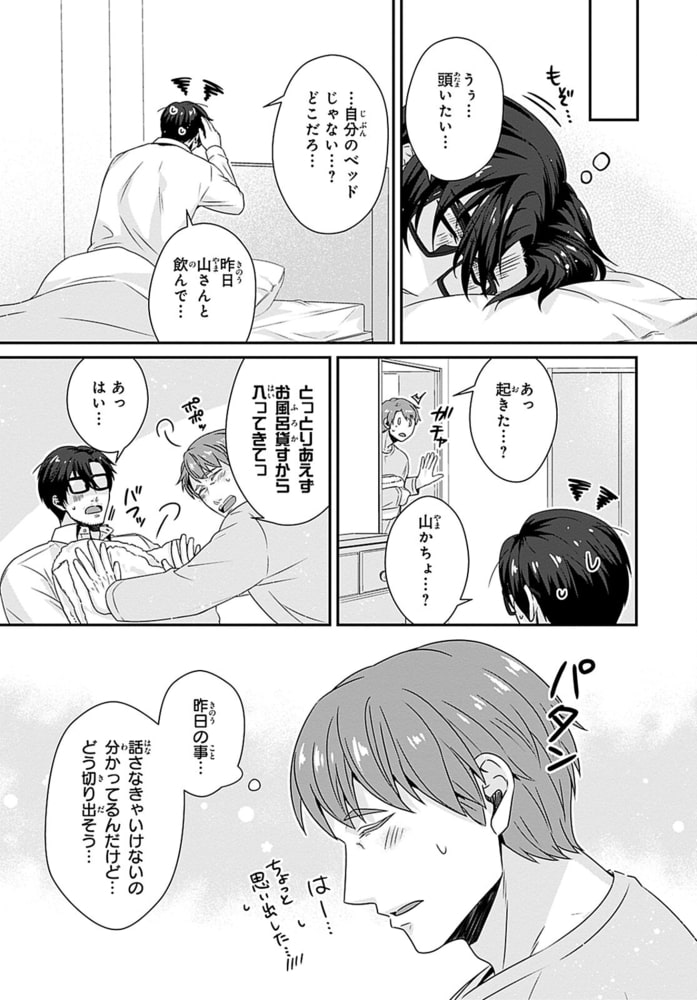 「感じやすい山課長可愛いです」会社のトイレで部下にアソコを咥えられイかされる!?肩に手を置かれただけでも感じてしまう山は、会社のトイレで勃起したアソコを静めようと奮闘していた。そこに、他部署の藤がやってきて!藤に会社のトイレで抜いていることがバレ「終わった…」と思っていたら「おさめるの手伝います」と扱いてきた!?手で触れられたら感じるからやめるように話すと、「手が使えないなら口で」とフェラをしてきて!?あまりの快感に盛大に射精し、藤のシャツを精液まみれにしてしまい…イケメンだけど無口で何考えてるかわからない部下×感じやすい社畜おじさん上司のトイレの個室SEXから始まった恋の行方は――!?