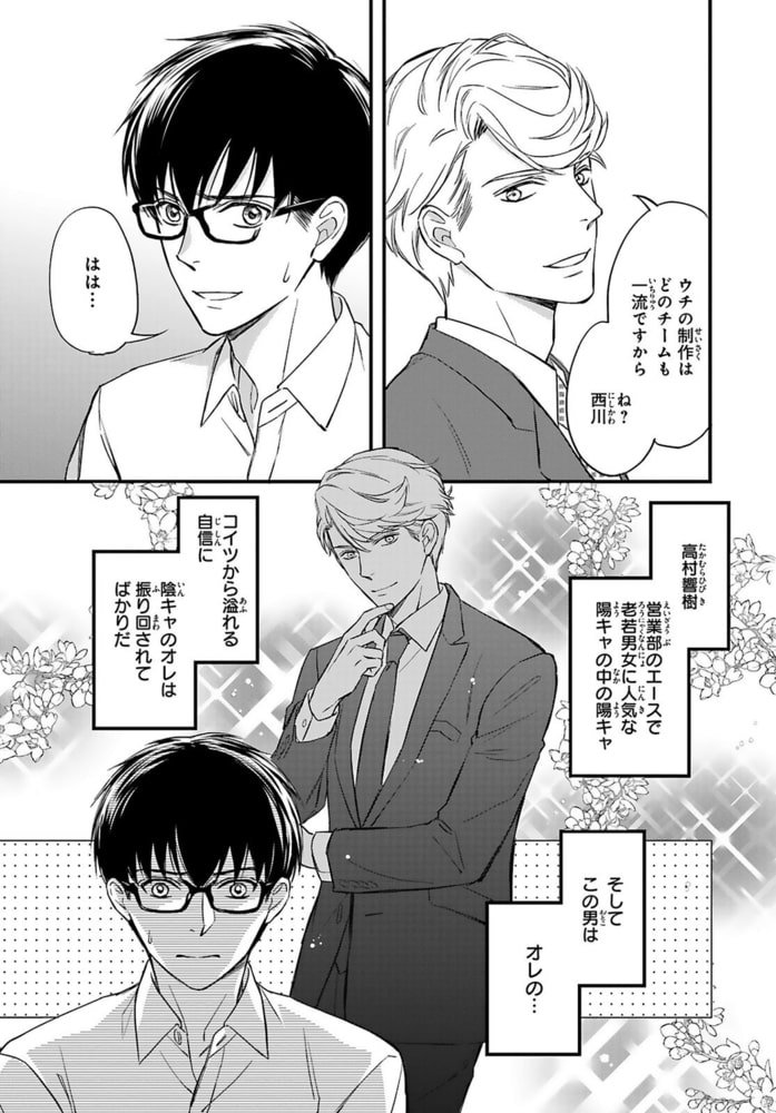 「本当はこういうプレイ好きなんだろ?」嫌いな同期から逃げられず、夜のオフィスで強○オ●ニー!?地味でモテない陰キャリーマンの西川は、自分とは正反対な陽キャで男女問わず人気のあるイケメン同期・高村のことが苦手だった。部署も違うのに高村は何で俺に構ってくるんだ!?と不信に思っていたある日、西川は飲み会で泥酔してしまう。すると目覚めた場所は高村の家で…「西川の弱み、見つけちゃった」敏感な乳首を守るため可愛いメンズランジェリーを愛用していた西川は、その姿を見られてしまう!!さらに敏感すぎる乳首を弄られ、開発済みの体だと誤解された西川。変態な顔を見せる高村に、エッチな下着と玩具を着けるよう脅されて―!?