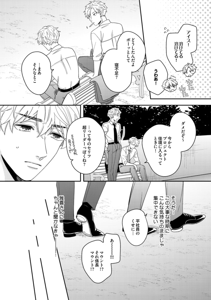 藤峰式「調教性活」連載掲載!! 仲直りエッチ★主従★3P★見せつけエロ★ 人気連載&新作掲載・オール描き下ろしマンガで読みごたえ大満足★ 藤峰式「調教性活4」超人気!!「調教」シリーズ・連載中!! 上司の金岡と晴れて恋人同士になった藤田は恋も仕事も順風満帆! ところが、金岡を狙っているハイパーイケメンの上司・鬼頭が現れる。金岡との過去を匂わせる鬼頭に対して、ついに藤田が行動を起こすっ……!! マノ「オレの顔でエロイことするな 3」モテまくり人生を謳歌する春人の口癖は「抱かれるなら自分の顔がいい」! そんな春人の前に、自分と同じ顔で“男も女も食い散らかす遊び人”ハルカが現れる。説教をするはずがラブホに連れ込まれ、同じ顔の男とのセックスで気持ちよくイかされてしまい!? さらにハルカの存在を「感じて」しまった春人は──。 市花マツビ「ご主人様はお世話係を可愛がりたい1」新連載★スタート!! 立派なお屋敷に派遣された三月は、屋敷の御曹司・直哉に、いきなりお世話係に抜擢されてしまう…! それは彼の身支度だけでなく、夜のセックスの相手まで含まれていて──!? 昼間は厳格でクールなご主人様が、夜はトロトロに可愛がる理由は……?? 椿野イメリ「双子×征服 3」堂坂一族のはみ出し者・ルミは、父親が借金で高飛びし、富豪から一文無しに落ちぶれてしまう。そんなルミの前に「体で払え」と傲慢なイケメン双子が現れ、カラダを差し出すハメになって!? 双子に征服されられる──。 今月号は、藤峰式先生の大人気!「調教性活」金岡さん&藤田くんのベッドでラブラブ表紙が目印っ!