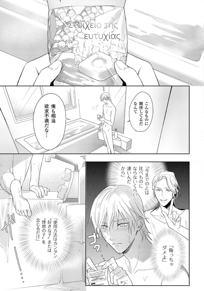 小柄で可愛い見た目のせいで「天使系男子」というコンセプトで読者モデルをしている律は、本当はカッコイイ男に憧れている。ある日先輩モデルからもらった怪しい入浴剤を使うと、逞しい長身と精悍な顔立ちの、まさに律がこうなりたいと願う理想通りの男がお湯から現れた。全裸で。「俺はご主人様がお使いになった入浴剤の精霊でございます」紳士的かつ強引にエロいご奉仕をする精霊。精霊の顔が好みすぎて逆えず気持ちよくさせられてしまう律。主従関係を結んだ二人だが、精霊・ナイトは10日後には消滅してしまう運命だという。ただし、ご主人様と「心から愛し合えば」消えずに済むというのだが……。電子限定特典まんが「浴衣でロマンス」も収録!!