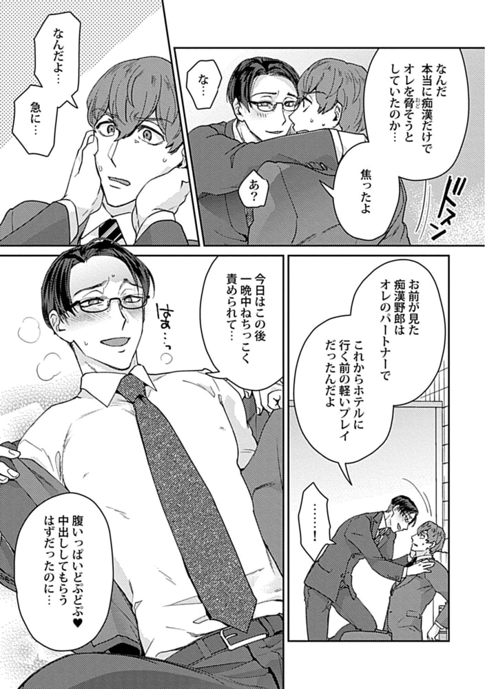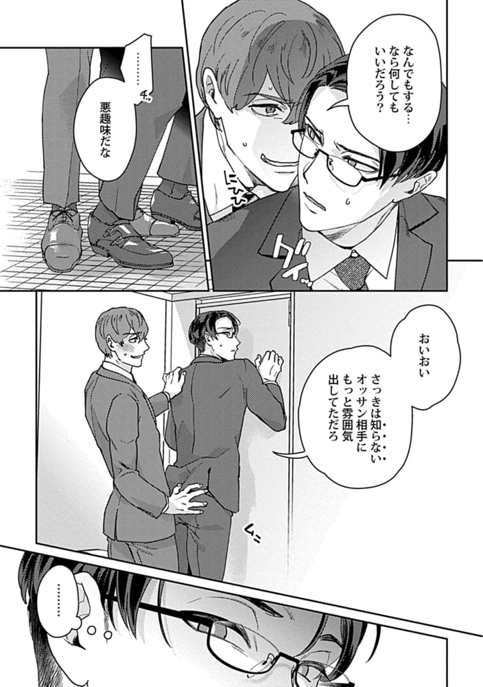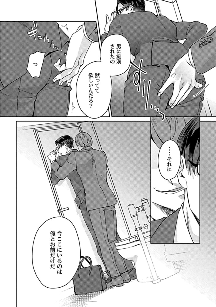 渋江明彦は会社でも一目置かれているエース様だ。そんな彼がまさか目の前で痴○されてるなんて…。その姿を目撃した同僚である高嶋は、痴○をネタに渋江を個室トイレに連れ込む事に。知らないおっさんに尻揉まれて感じてるくらいだからこれくらいいいよな?と脅しをかけたつもりの高嶋だったが、渋江はエッチな身体を晒してきて…?仕事終わりのむんむん蒸れチ○ポで眼鏡も曇っちゃう!?くそビッチエース様をバックからガン突き、ゴム無し無許可中出しおセックス!