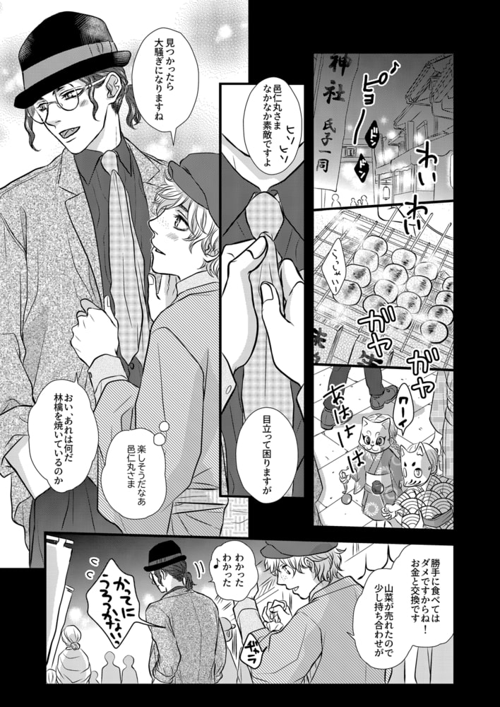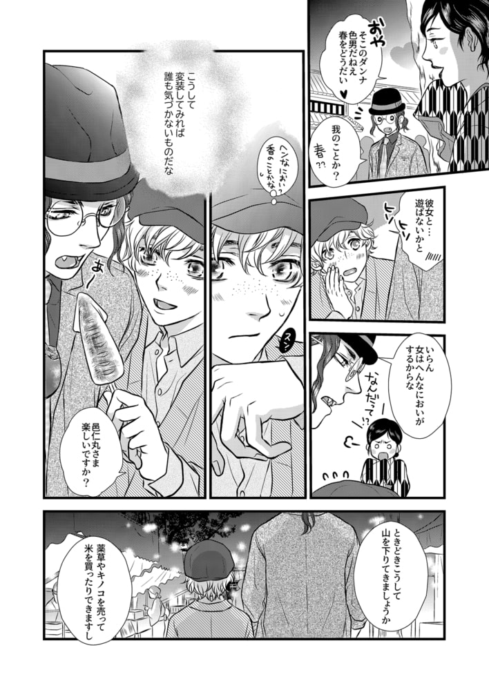 「もっと食わせろ」日本人離れした色の髪と目を持つ青年・日出郎。幼い頃親に捨てられ、村人からも忌み嫌われ、育ての親まで亡くし…いよいよ独りになってしまった。行く宛もなく彷徨い歩いていると、山奥の古い神社にたどり着く。出迎えてくれた宮司も同じく変わった目の色をしていて、日出郎はつい魅了されてしまう。しかし、宮司はみるみる内に鋭い牙と爪を生やした鬼に変貌して!?その恐ろしい姿に怯えつつ興味を持った日出郎。下働きとして料理を振る舞えば目を輝かせて食べてくれ、神通力を褒めれば得意げな顔をする…。まるで子供みたいだと微笑ましく思っていたが、閨では精気を求められケダモノのように激しく抱かれてしまい―…