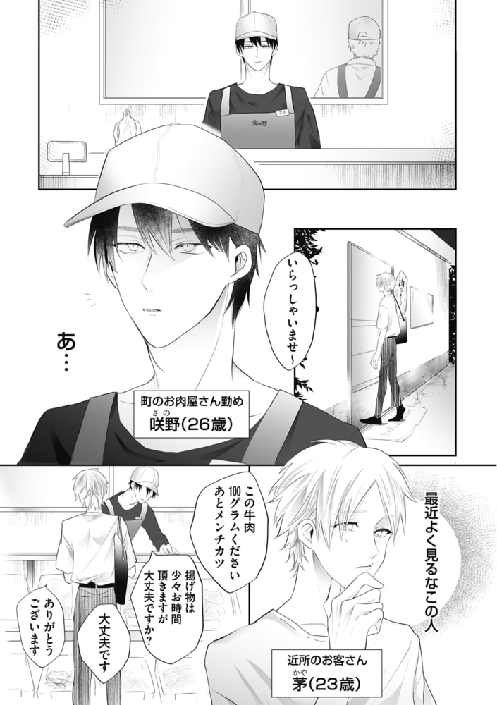 肉屋勤めの咲野は、変わった雰囲気の常連客・茅から