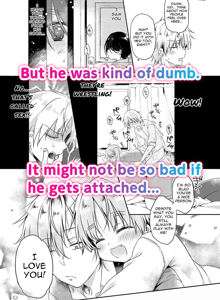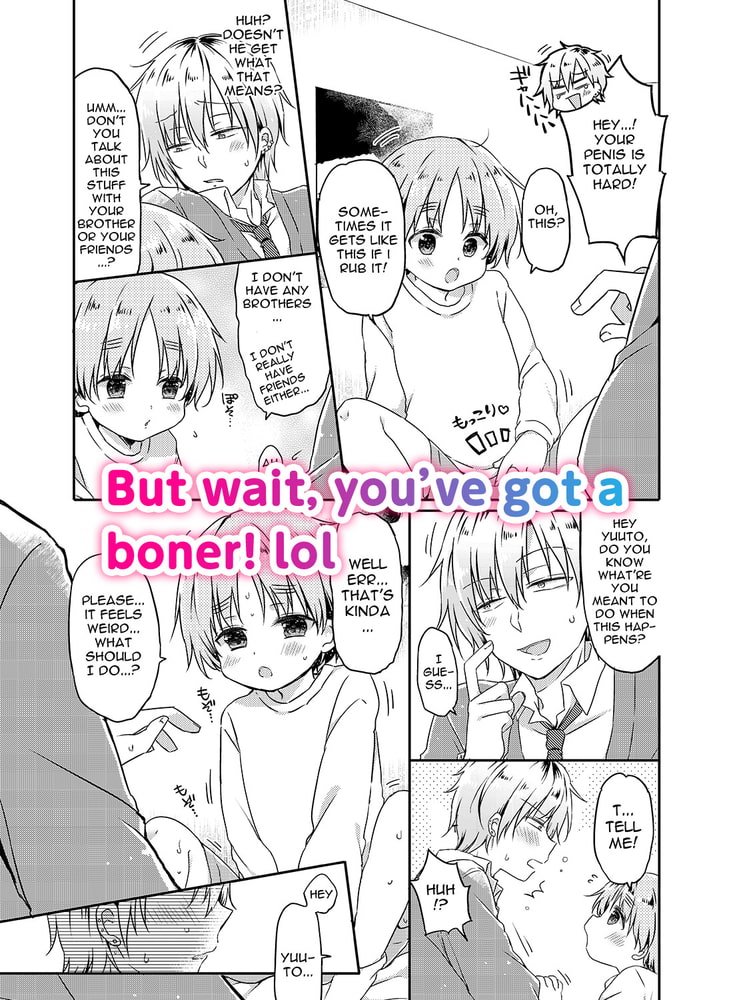 Yuuto's girlfriend broke up with him, and he finds himself helping her little brother Sora "get rid of the itchy feeling in his dick". At first he was mostly playing around, but when brushing a sensitive spot coaxes a moan from the young boy, Yuuto's self control goes out the window!