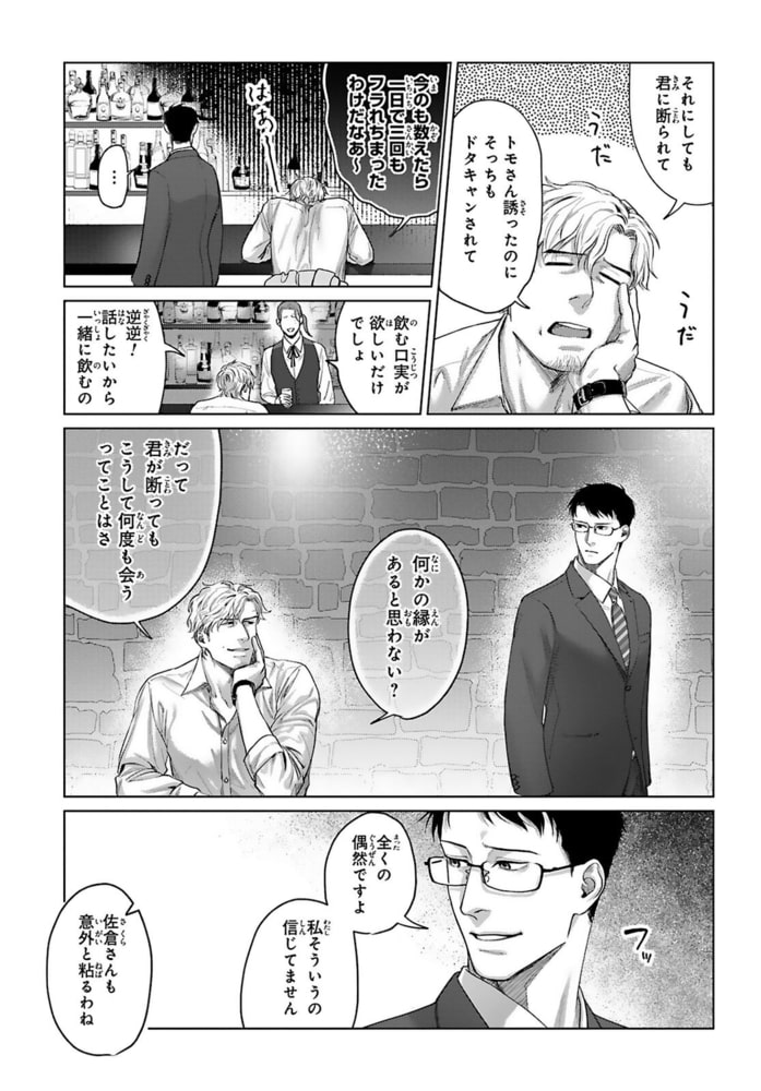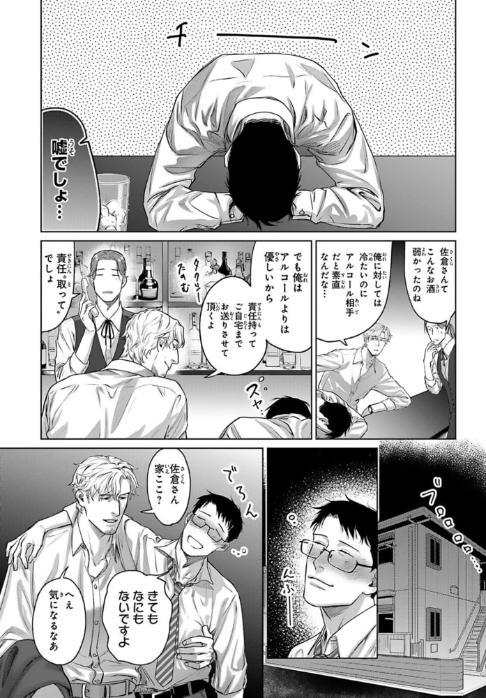 『寂しがりやな嘘つき男の落とし方』1,2話を収録した合冊版!』「欲しいと思ったら絶対手に入れたくなっちゃうタチでね」ゲイの柴は友人から仕事相手として佐倉を紹介される。かっちり着込んだスーツに凛とした顔立ちの佐倉に思わず目を奪われた柴。少しでも親睦を深めるため飲みに誘うも“カッチリ分けたいタイプだから”とばっさり断られてしまう。プライベートが全く見えない佐倉だったけどひょんなことから酔った佐倉を家に送ることに。すると今までの生真面目な態度から一変、佐倉が甘えるように縋ってきて…?あまりの豹変ぶりに訳ありかと推測する柴だけど挿入されたソコを撫でる淫靡な姿に、佐倉のことをどんどん知りたくなって――?
