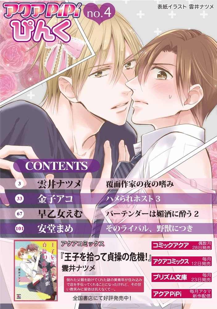 人気ミステリー作家・香月は、女装趣味のイケメンだった!?【覆面作家の夜の嗜み】他、全4作品を収録。 ◆収録作品◆ 【覆面作家の夜の嗜み】雲井ナツメ 【そのライバル、野獣につき】安堂まめ 【バーテンダーは媚酒に酔う2】早乙女えむ 【ハメられホスト3】金子アコ