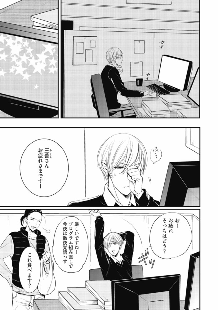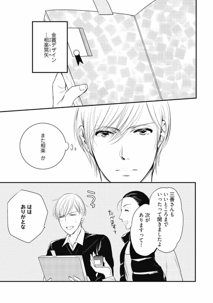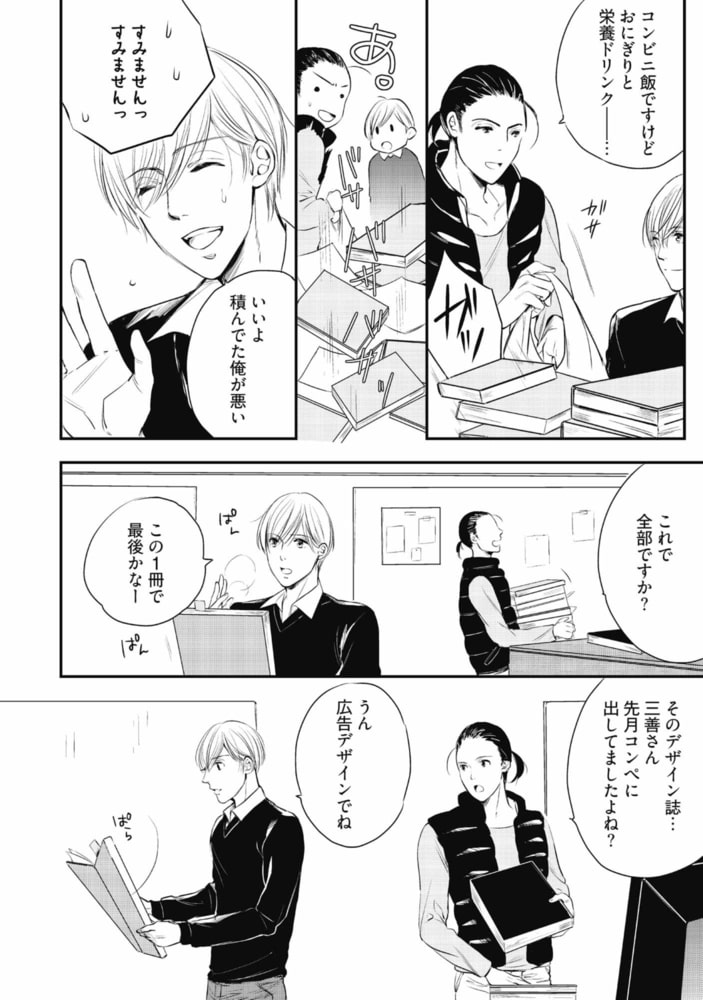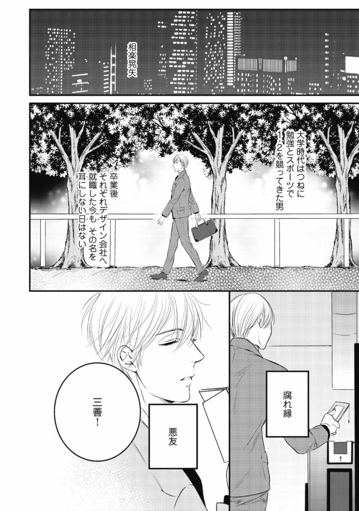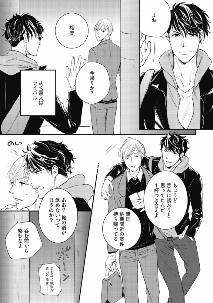 「知りたいか? 昨夜の恥ずかしいこと」不遜で自信家な相楽と、真面目で努力家な三善。デザイン会社に勤める2人は、毎回コンペで競い合う、言わば『ライバル』だ。対極の性格ながら互いに切磋琢磨する相楽と三善だったが、ある夜キスしたことをキッカケに関係が変わり始め──!?恋に仕事にぶつかり合う! オトコとオトコのラブウォーズv