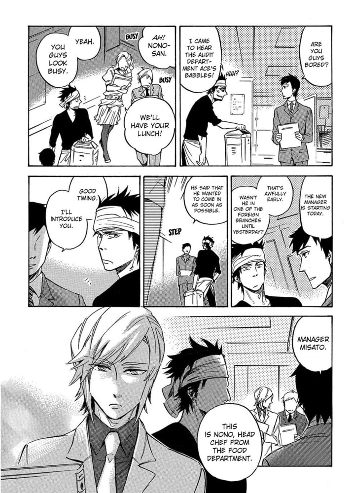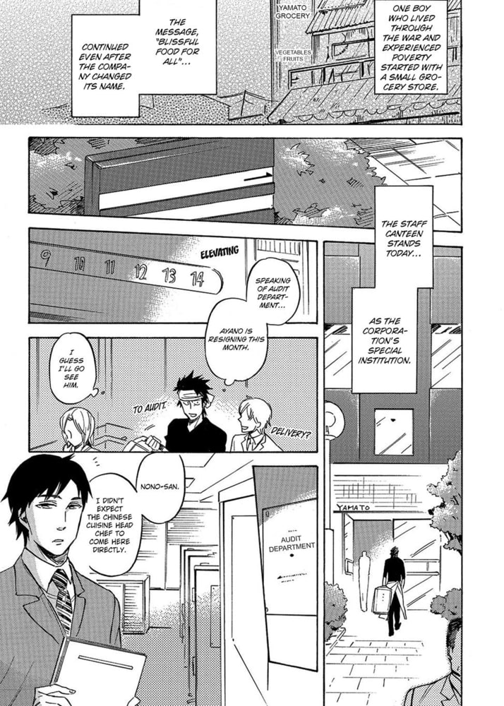 "Daiwa Corporation" is one of the leading companies in the food industry.Seiji Nono might look like a delinquent, but he's a master cook who works as the head chef of the company's Chinese cuisine division.He has many fans who show up for his delicious cooking and uncharacteristic looks.One day, Nono meets an elite business man, Kakeru Misato, who was appointed as the new branch manager.Nono tries his best to welcome the new manager by inviting him to the cafeteria, but Misato quickly rejects him by saying, "I don't like Chinese cuisine. It's oily."A tense yet romantic relationship between a cool business man and a delinquent chef.