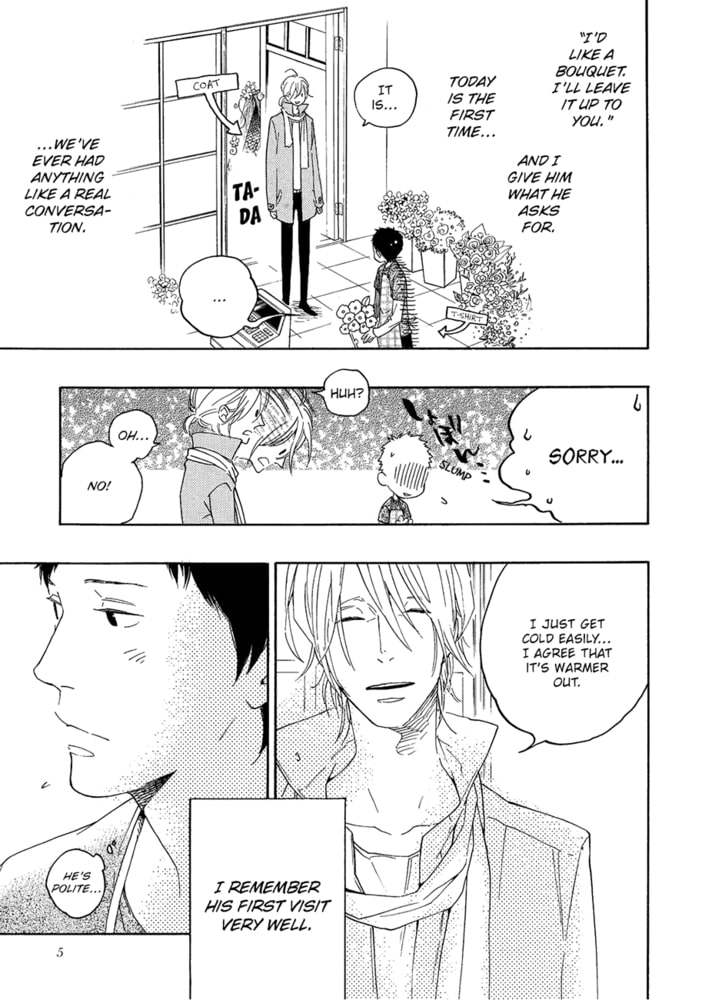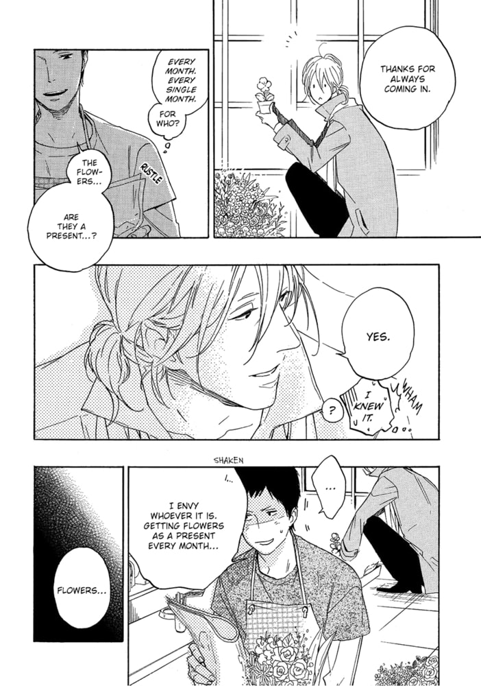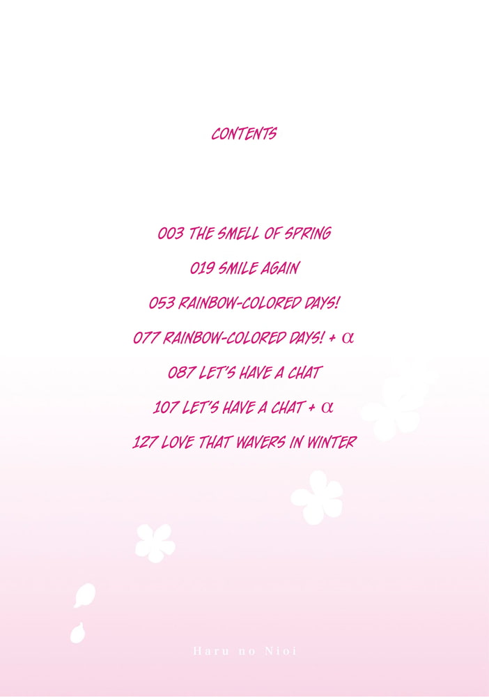 With a beautiful face and delicate build, he comes in every month on the same day to buy flowers, but who are they for? Should I get the nerve to talk to him? Or would it be weird to talk to him after all this time...? Guided by the small of spring, the buds that have sprouted in their two hearts burst into bloom. Outside of the title story ? an eruption of high school fantasies?! Sweet, agonizing love at the age of 17, and new works, all included in this complete collection of short stories! This series has been published in Japan since 2008 which Japanese title name is "Haru no Nioi"