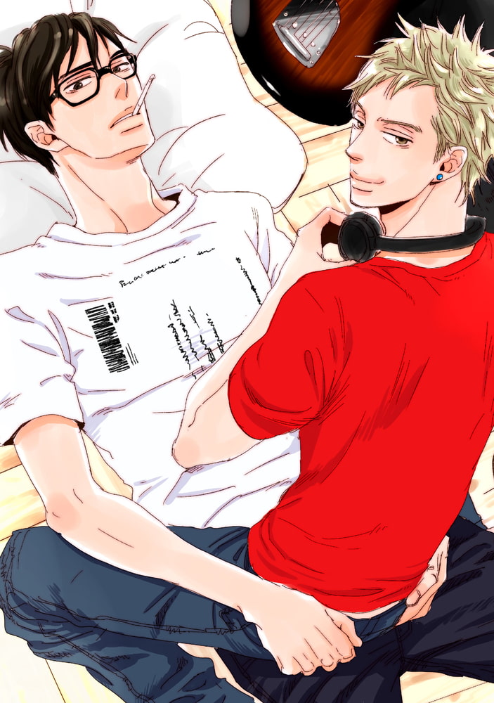 "Hey, Shin. Ready for Round 2?" This guy is like a cat that does what it wants, when it wants! He only comes on to me when he feels like it... But I just can't go without seeing him..." Shiina the savant guitarist has come back to Shin, who is an editor at a music magazine. While Shiina's crazy good on guitar, he's more or less done with the Japanese music industry. But he's not bothered at all - he just ventures in and out of Japan as he pleases, leaving his longtime lover Shin in the dust. While Shin can't stand Shiina going cold, whenever the two are reuinated the heat is most definitely on, with plenty of cooing and moaning and begging... A love story swept up in a whilwind of romance and intense feelings of both adoration and inferiority towards a talented individual, the rumblings between the two make for a very adult read.