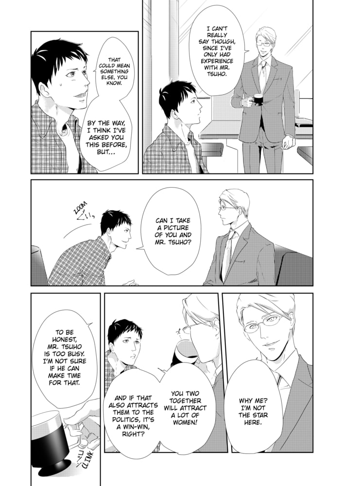 A gay congressman, Satoru Tsuho, frequents a member’s only S&M club. One day, he meets a mysterious trainer named Kyo as part of a free course, and tastes a flavor of sadism he has never before experienced. (My head is blank…) Satoru’s true self is revealed as he climaxes in front of the room’s mirror. Two people who should have never crossed paths star in this love story, where their S&M training sessions become like a dance…