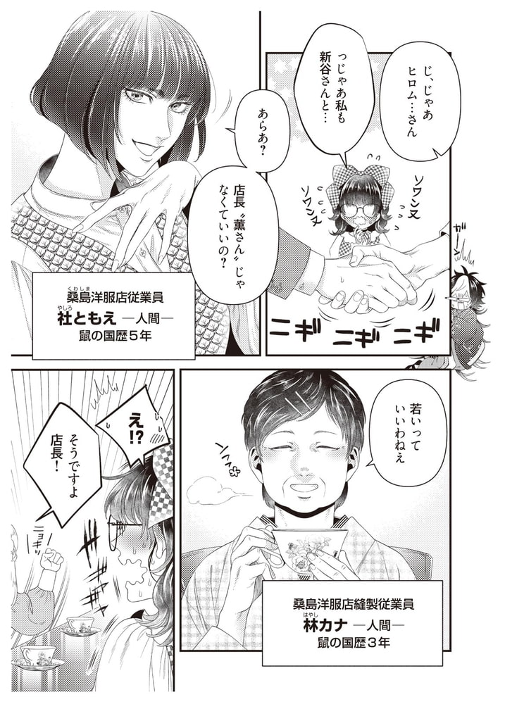 鼠の国に落ちてきた人間や洋服店従業員が集まり、新谷の歓迎会である「人間お茶会」が開催された。