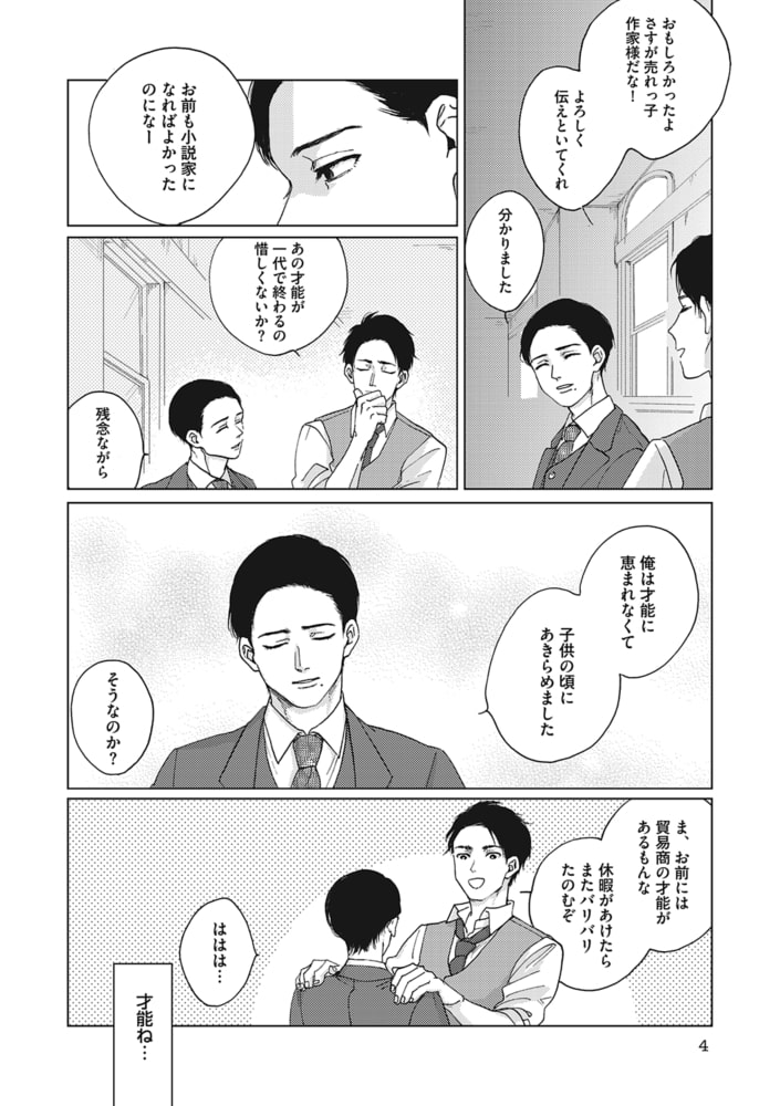 時は大正。有名な小説家を父に持つ晃一郎は、帝大出のエリートサラリーマン。父のような小説家になりたいと一時期はその道を志したが父の一言で挫折した過去を持つ。久しぶりに実家に帰ると、父は住み込みの弟子をとっていた。弟子の名は要。和服を着こなすハーフの美青年だった。父に認められた才能を目の前にして晃一郎は"ちょっかい"をかけてみることに…