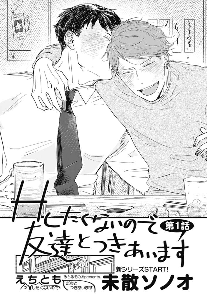 弓岡琢磨(28歳)はコピー機のルート営業で元水泳選手。犬塚亮平(28歳)はスーパー所属の実業団駅伝選手。大学の同期だが接点の少なかったふたりが、偶然5年ぶりに再会して居酒屋に。モテすぎて喰われてきたのでもうセックスしたくない弓岡と、セックスするとタイムが下がると信じてセックスしたくない犬塚…酔った勢いとはいえ、恋人は欲しいがセックスしたくない、ならば友達とつきあえばいいのでは…と意見が一致、ノンケ同士なのに盛り上がり…!?