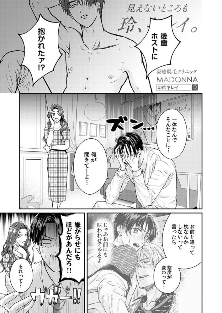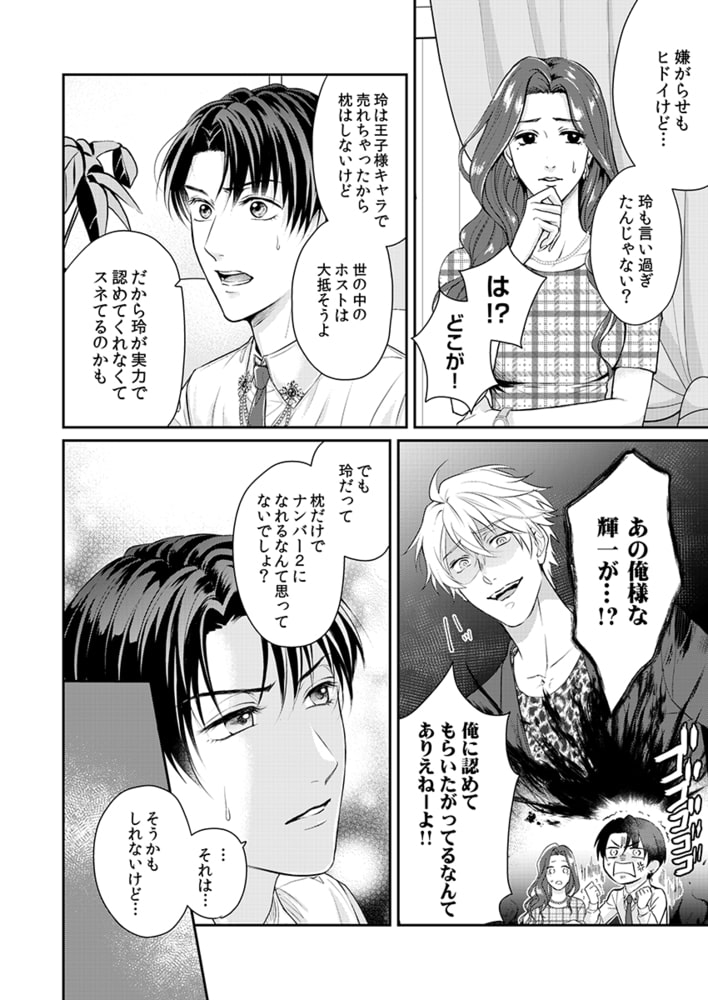 「明日からお前、俺のおもちゃな」――グループNo.1に輝く王子様系ホスト・玲は、店舗合併によりライバルであるネオホスト・輝一と協働することに。生意気で不躾、営業スタイルも真逆の輝一と仲良くなれるはずもなく初日から険悪な2人。ところがひょんなことから玲の弱みを握った輝一に勝負を持ち掛けられ…「負けたら剃毛プレイ!?」最初は剃毛から始まったイヤガラセだが、エロい手つきで責められ刺激は徐々に快感にすり替わっていく…!拘束手コキ、玩具で前立腺開発、さらには激しいセックスで何度もイかされ…ヨがる玲を見て、輝一の行動がエスカレートし…!?年下ドSホスト×ツンデレ王子様系ホストの不器用な下剋上ラブ!