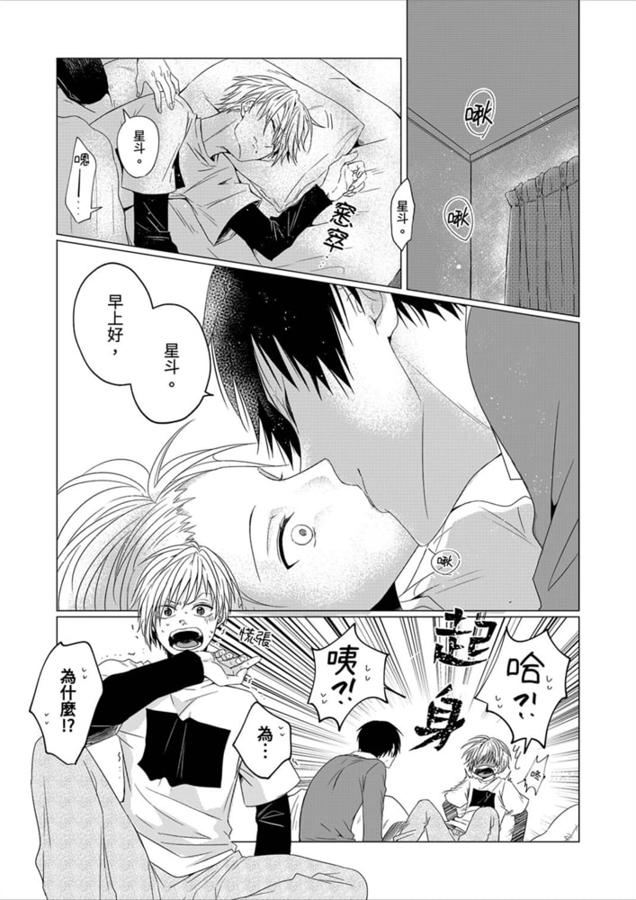 即將開啟新生活的星斗,竟然在學生宿舍重逢了幼時的摯友彰生,兩個人還成為了舍友。彰生小時候給他講過很多有關星星的故事,而且是個很好相處,很可靠的人,星斗本想像那時一樣繼續和他當好朋友……結果同居第一天,彰生竟然就用一個吻喚醒了他,甚至還見縫插針地不斷和他告白,最要命的是他甚至還追到了澡堂裡!!可是不討厭彰生這種強烈攻勢,甚至還感到有些心動的星斗,又究竟對彰生懷抱著怎樣的感情!?攻勢激烈攻×倔強受的同學戀情!!