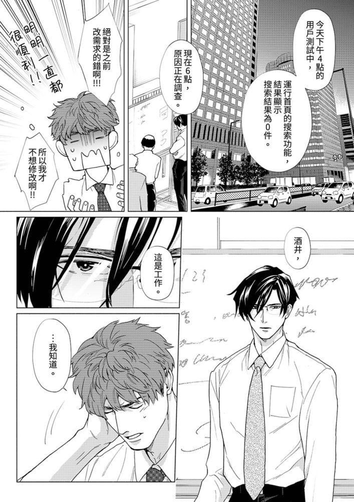 白領男酒井在社交軟件上遇到了一個很中意的男人,並且預定要在今晚和他見面,和這個穿著色情內衣、後穴塞著肛塞的淫亂男人來一場火熱的一夜情。結果,他竟然唯獨今晚遇上了做不完的工作…!和他毫不合拍的上司八嶋甚至還在這種時候嘲諷他,氣得酒井打算去抽一根煙消消火,然而就在這時,他突然收到了那個男人的過激色情自拍!?正當酒井泛起情慾趕往廁所時,他卻在廁所里發現了同樣穿著色情服裝的八嶋——!?