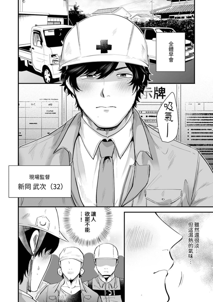 負責工地監工的新岡對於氣味有著很特殊的癖好。對於喜歡汗味的他來說,工地這個職場仿佛就像天國一樣。然而就在這樣的某一天裡,他竟然被新來的腳手架工人香川的氣味刺激到了勃起…!?正當他因為無法忍耐情慾而一個人在洗手間裡擼的時候,讓他勃起的元兇竟然走了進來!而且他還說,「…我想上你了」——。