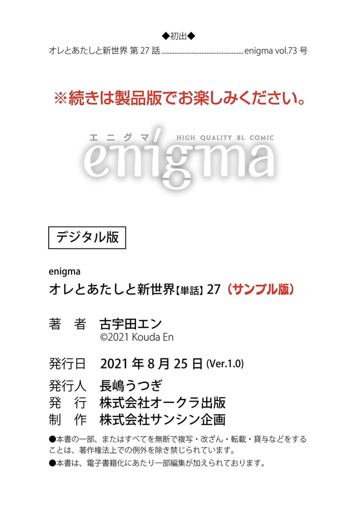 【本作はWEB雑誌「enigma」及び、enigmaコミックス「オレとあたしと新世界」に収録されています。重複購入にご注意ください。】