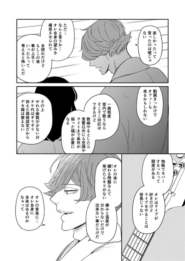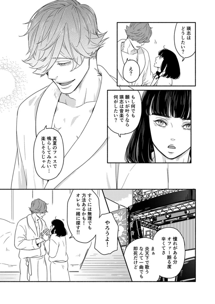 パートナーシップ制度で結婚した菅谷真央と甲斐田瑛志は、二人でアメリカへ移住。真央は映画撮影のため、瑛志はリハビリのためだった。甘い日々が過ぎていく中、瑛志の指先はまだギターを弾くには完全ではなかったが、遊びに来ていた新島たちと、とあるクラブで演奏したところ、そのライブ動画がSNSで拡散、瑛志の名前がトレンド入りし、新島たちのバンドも広く知れ渡ることになる。みんな明るい道が開けようとしていたなか、自信を取り戻した瑛志と映画を撮り終えた真央は、満を持して日本へ帰国する!「あの時からスキだったんだと思う」真央と瑛志のその後を描いた続編!!