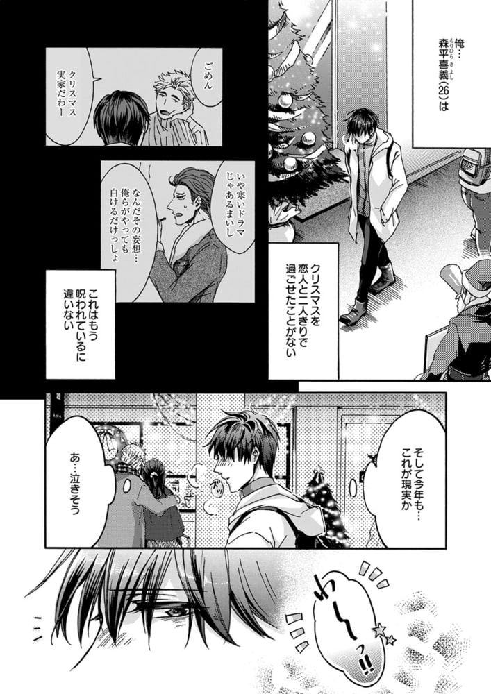 「クリスマス・プレゼントを届けに来たんだ。俺は君の思い描く『理想の恋人』だからーー。」森平喜義(キヨシ)はクリスマスを恋人と過ごせたことがない。甘いロマンチックな聖夜を一緒に過ごすことを夢見ているのに、今年もイヴ直前に恋人にフラれてしまった。ところが、傷心するキヨシの前に、謎のサンタが現れる。「ロマンチックなクリスマスを共にする、理想の恋人が欲しいんだろう?」突然のことに驚きつつも、彼の端正な容姿や、自分の願いを受け止めてくれる深い優しさに心惹かれたキヨシは、サンタとイヴの夜を共にする。ところが、サンタには『とある秘密』があって――? クリスマスの出会いから始まった、ちょっと不思議でハートフルなラブストーリー!