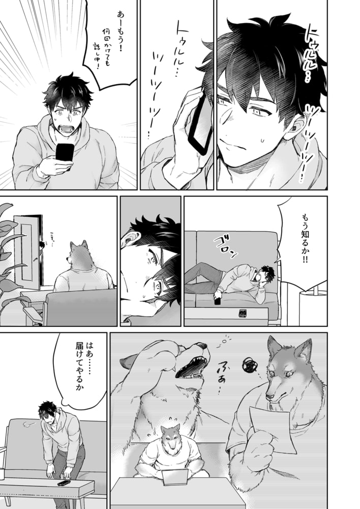 「もっと奥まで挿入ってこいよ…」獣人や同性婚が当たり前になった世界で暮らす人間のカイは、なにもかも平凡な自分にコンプレックスを感じていた。そんなある日、病気の父親に勧められて狼獣人のマカミとお見合いすることに。戸惑うカイとは反対に喜びに溢れるマカミ。会いたかったと突然キスまでされてしまって!?しかも、なし崩し的に同棲することになってしまう。このまま結婚するなら子作りもするよな…って、心配したのに全く手を出されず…。自分に魅力がないからかとコンプレックスを刺激されたカイは、あの手この手とエッチな誘惑を試みるが…!?――優しく接するだけの狼(夫)との結婚セイ活はどうなる!?