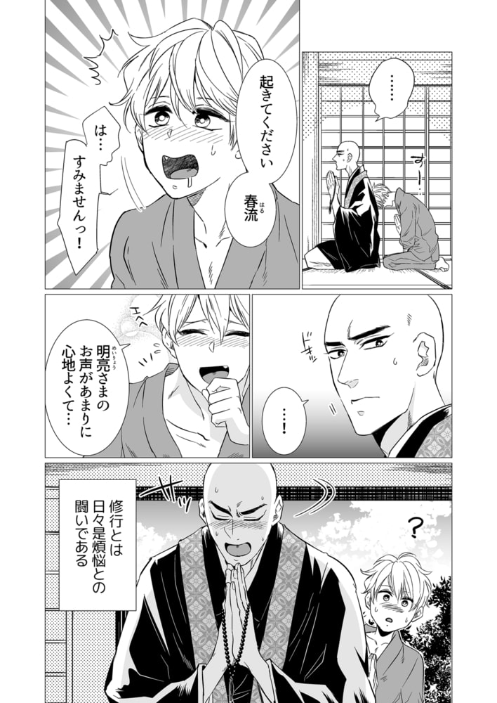 山寺で一人ひっそりと暮らす僧侶・明亮。そんな彼に弟子入りした青年・春流はドジで何をさせても失敗ばかり。それでも素直で真面目で気に入っていたが――。ある日の坐禅の特訓中、上手くできない春流に何気なく「座りなさい」と命令した明亮。すると突然、春流のカラダが火照りだして…!?跪いて懇願するようにペロペロと指を舐めてくる。その姿に明亮の“本能”が疼きだして――。「犬のように口で舐めなさい」勃起したチ○コを差し出すと、喉奥まで激しく突きつけても必死で舐めてくる春流。興奮して思わず口に出してしまうが、それでも明亮の欲望は収まらず…!Dom僧侶×Subワンコの煩悩にまみれた主従関係ラブ。