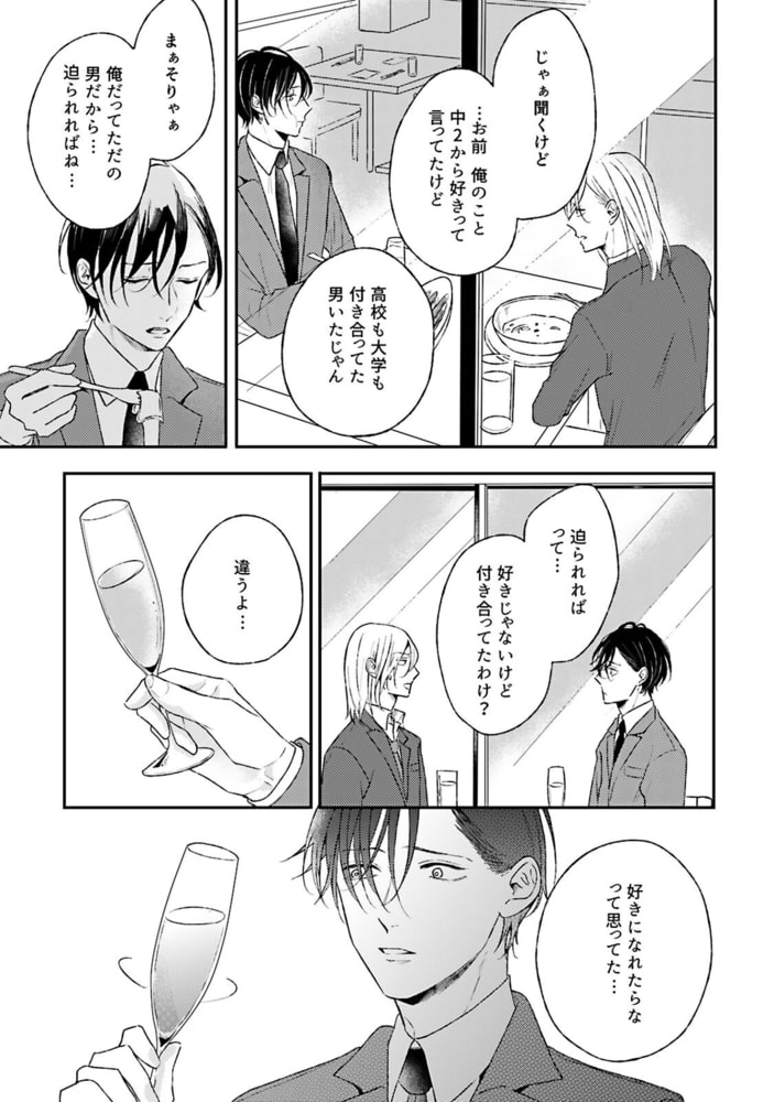 【電子書店限定、おまけマンガ1ページ収録】「中学2年!俺、そん時からお前のこと好きだから」5年間付き合った彼氏と別れたバイの侑吾。それを学生時代からの親友でゲイの祭に話を聞いてもらっていたら、突然祭から「5年間ずっと後悔してたからもう遠慮しない」と宣言され、告白される。それからというもののマメな連絡や自宅へのお誘い、家での待ち伏せ等…宣言通り、ぐいぐいと祭が迫ってきて!?だけどタチ同士なことを気にしてか体の関係は二の次でいいから…と言われ、今までクールなイメージだっただけに、自分にだけ見せる必死な姿が段々可愛く思えてきた侑吾は…?