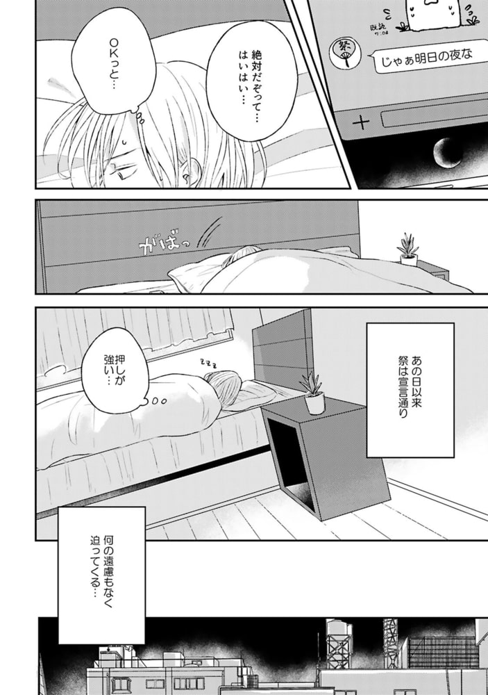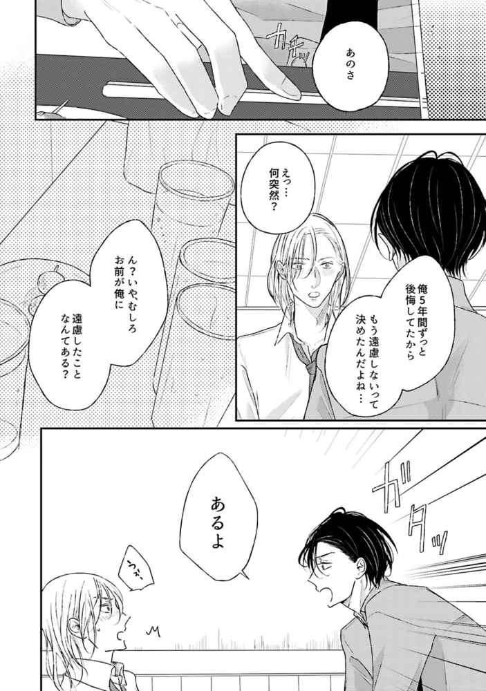 『俺の親友は追って迫って遠慮しない』1,2巻を収録した合冊版!「中学2年!俺、そん時からお前のこと好きだから」5年間付き合った彼氏と別れたバイの侑吾。それを学生時代からの親友でゲイの祭に話を聞いてもらっていたら、突然祭から「5年間ずっと後悔してたからもう遠慮しない」と宣言され、告白される。それからというもののマメな連絡や自宅へのお誘い、家での待ち伏せ等…宣言通り、ぐいぐいと祭が迫ってきて!?だけどタチ同士なことを気にしてか体の関係は二の次でいいから…と言われ、今までクールなイメージだっただけに、自分にだけ見せる必死な姿が段々可愛く思えてきた侑吾は…?