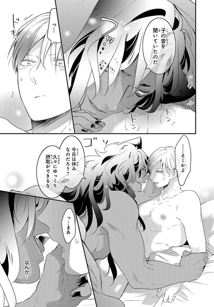 「我の子を産むことが失禁するほど嬉しいか」ヤリチンの俺が、偉そうなケモ耳男に上も下も犯されビショビショに…!?獣医学部に通う遊び人の友利人は、人間や動物を問わず『雄に悉く避けられ嫌われる』といった特異体質に悩まされていた。一方、女とは奔放な性生活を送っていたが、腹の熱くなるような疼きは女では解消できずア●ニーで何とかやり過ごしていた。そんなある夜、ア●ニーの真っ最中に、突然まっ黒で大きな獣が現れアソコを舐めてきて!?さらに「助けられた恩返しに我の子を孕ませにきてやったぞ」と人型になった神を名乗るケモ耳男にあっという間に押し倒されると、自分じゃ届かなかった奥を擦られ――…気持ち良すぎて……!!!!