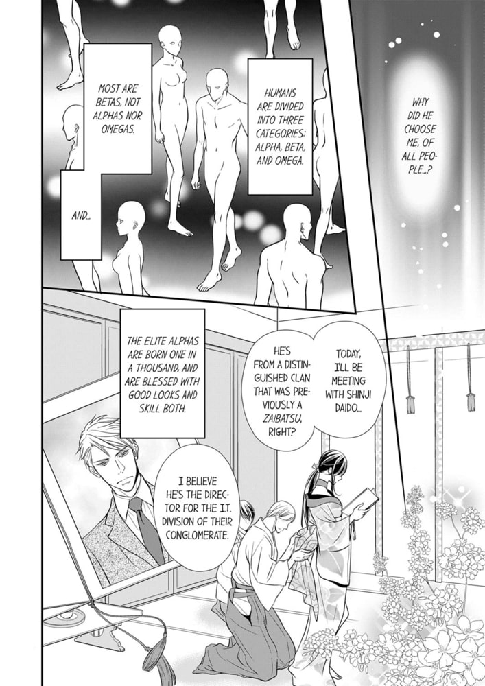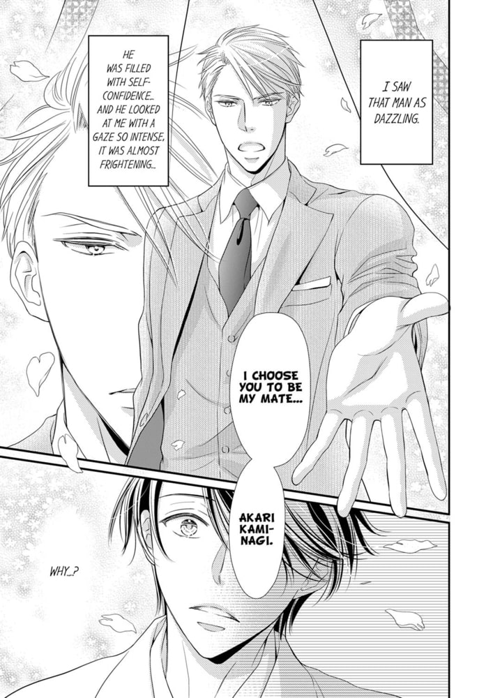 "I'll sleep with you until you can't take anymore; until you're soaked with my scent..." Akari is an omega despised even by his own family as useless, since he never had his first heat even after becoming an adult. However, one day, the alpha Shinji appears before him and claims he wants Akari to be his mate. Using drugs to force him into heat, Shinji has his way with Akari, now soaking wet, countless times. "Ah! ...Something's... coming!" Though Akari's body was yet immature, Shinji awakens the lust within him…