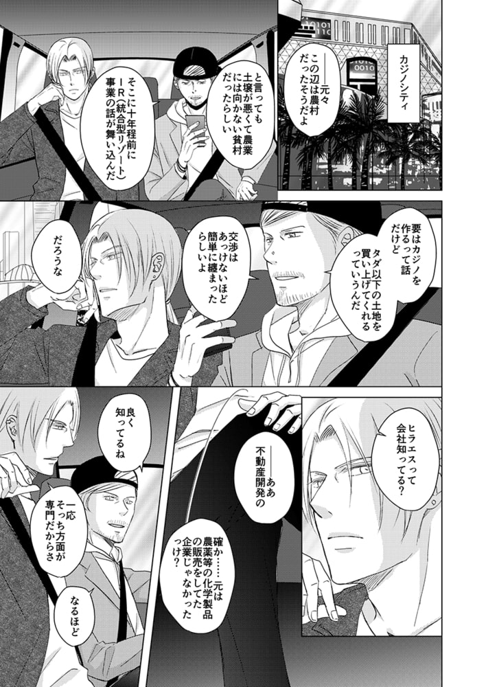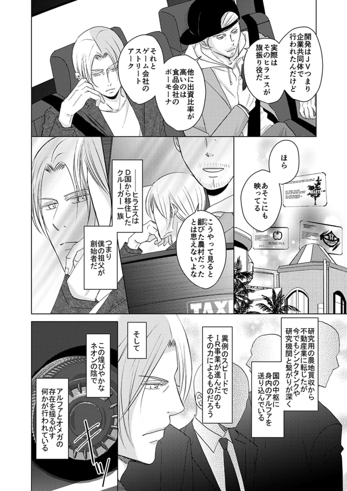 コンビを組んで犯罪組織と戦うショージとアルフ…ショージは【オメガ】ながらも、努力の末に特殊捜査官に所属するが、突然体を襲う「発情」は抑制剤を飲んでいても止める事が出来なかった。ショージの後輩にあたるアルフは彼の発情を抑えることの出来る唯一の【アルファ】だったが、その性質上、一度交尾を始めると、お互いが達するまで止める事は出来ない…お互いを求め合う姿はまるで獣――後輩と先輩、オメガとアルファ…ばら撒かれた糸の様な複雑な感情は、組織と言う閉鎖された空間の中でどの様に絡み合っていくのか…