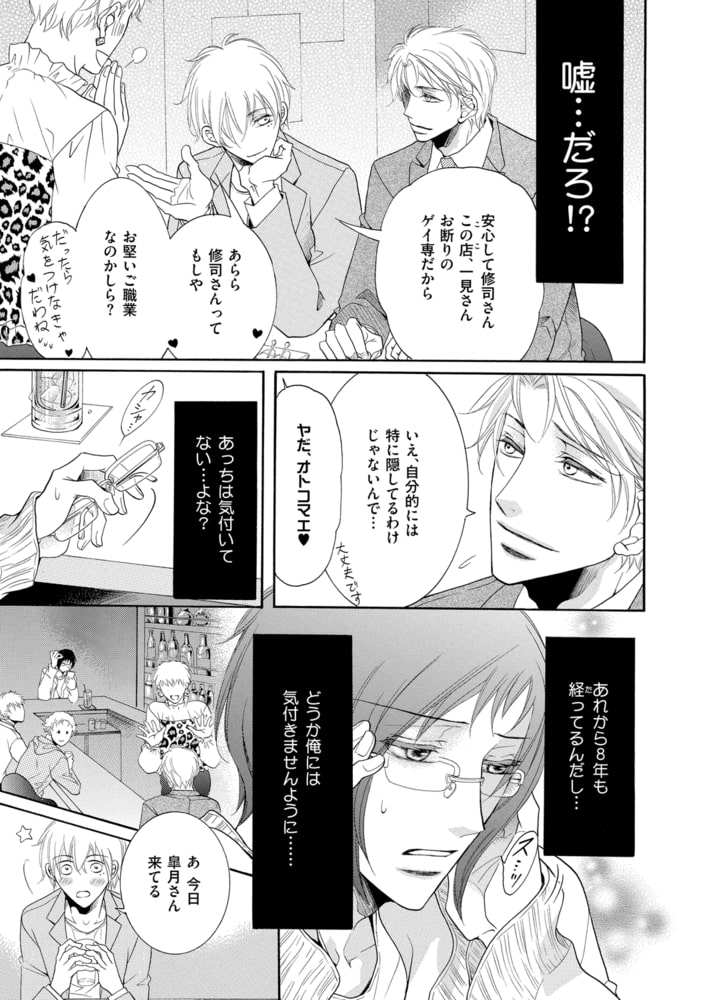 高校時代にずっと好きだった相手・修司に手酷くフラれ自暴自棄になっていた皐月は、それ以来、自分を痛めつけるかのようにセックスばかりし、痛みを伴わないとイけない身体になっていた。 そんなただれた性生活を送っていたある日、行きつけのゲイバーで偶然修司と再会してしまう。 過去に自分を『気持ち悪い』と罵った彼が、どうして…と戸惑う皐月。ところが、皐月のセックスの相手が暴力的な相手だと知った修司に「誰でもいいなら俺が抱いてやる」と迫られて…!?