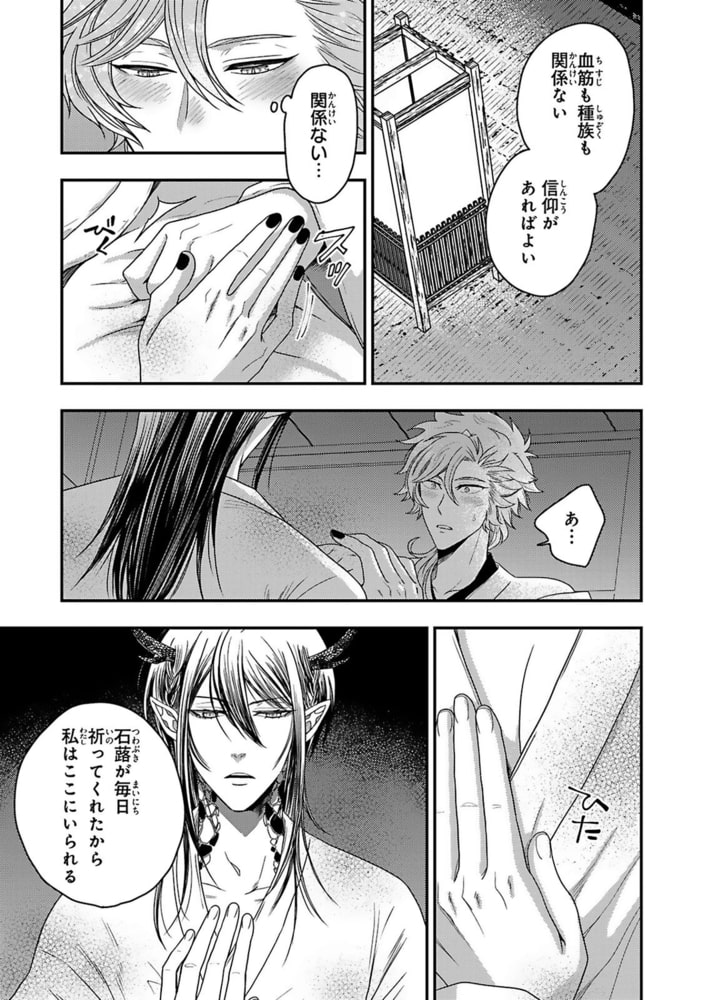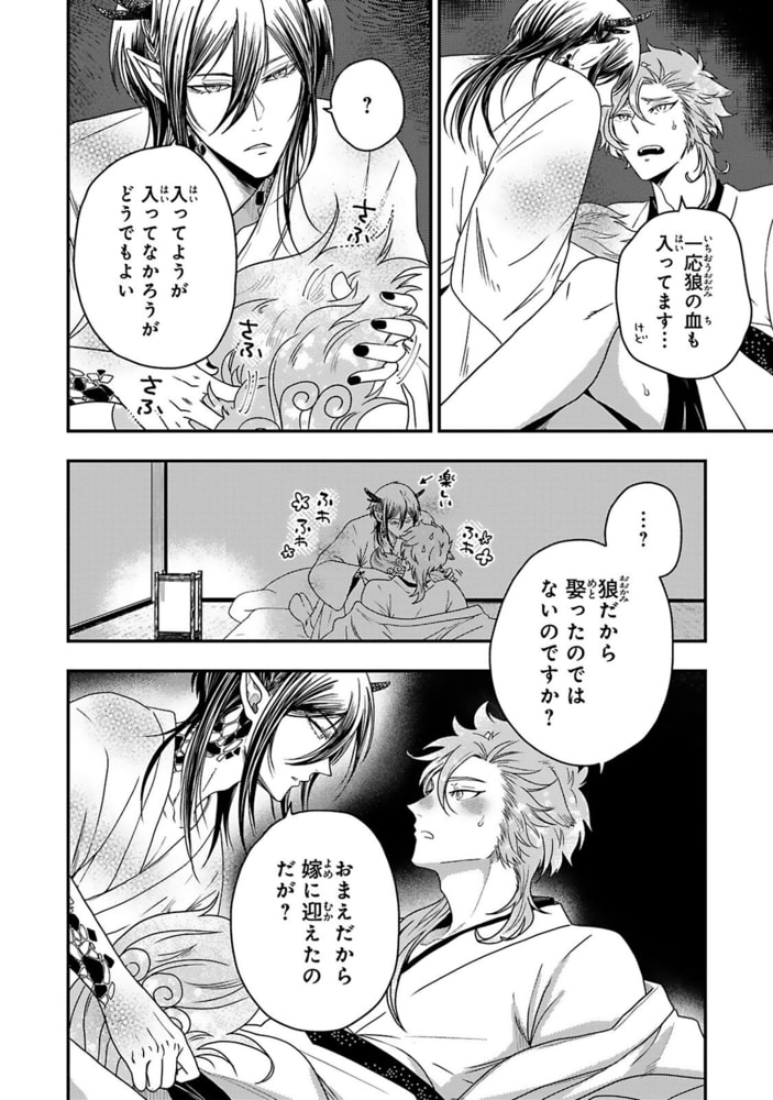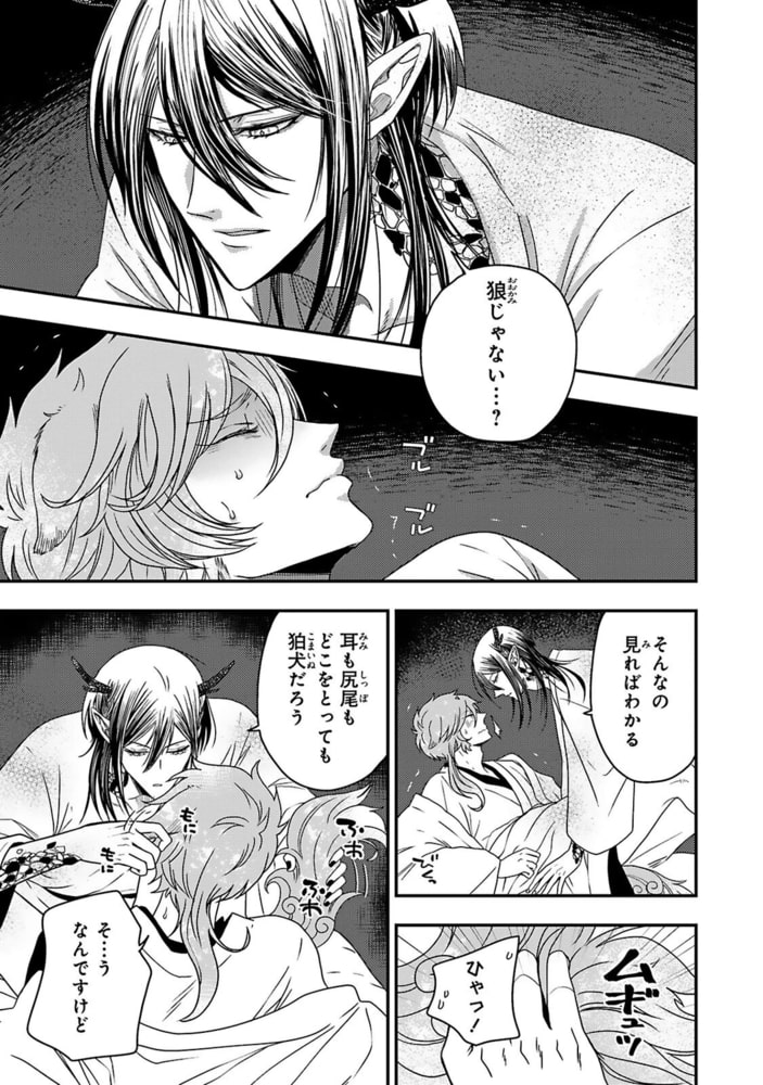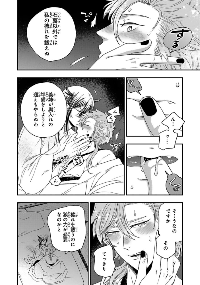 「初夜なのだから、ただ甘やかされていればよい」神の大きなアレを受け入れるのに、トロトロになるまで後ろをほぐされて一気に――!!狼の父と狛犬の母の間に生まれた狛犬・石蕗は、妾だった母が死んでからは使用人として狼家でひっそりと暮らしていた。そんなある日、突然狼家にきた山神からの嫁取り相談。力の衰えた神を身体で癒すという生贄のような役目に強く反発した姉はその役目を石蕗に押し付け、石蕗が嫁入りする事になってしまう!!狼ではない自分では嫁の役目を果たせないのでは…?と不安を抱えて神の元に嫁いだ石蕗だが、山神の棕櫚は石蕗が現れた途端「待っていた」と押し倒してきて!?
