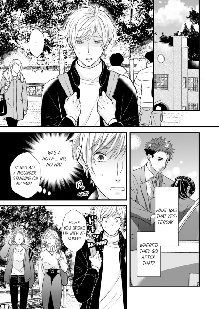 "Your nipples stuck out properly."His senior's tongue piercing goes in deep licking the indent... His sensitive nipples quiver as the start to stand out...!?