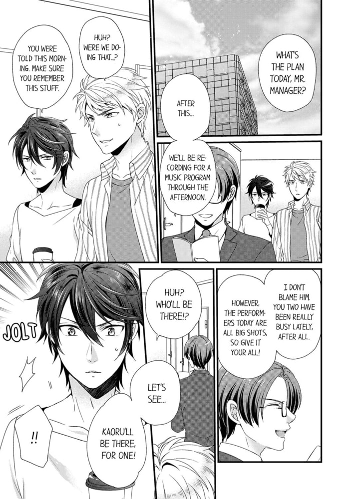 Nanase, the cool lead of the alpha idol unit, Cosmic, has a secret he doesn’t want anyone to know: he’s actually an omega. However, Daichi, another member of Cosmic and a real alpha, tells Nanase face-to-face, “What if we’re destined mates?” and starts rubbing Nanase’s body provocatively…!? Though Nanase controls himself through use of suppressants, the moment Daichi touches him, his entire body is overcome with indecent desires…!!