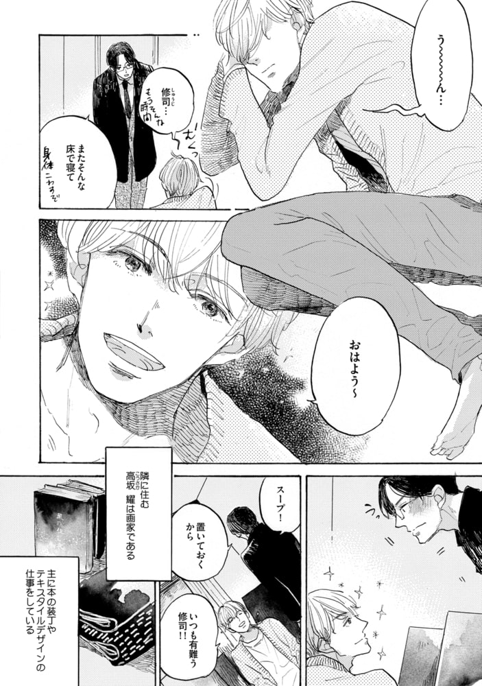 天才肌の画家・耀と、公務員の修司は幼馴染み。 社会人になって、思いがけずお隣さんとして再会したふたりは、毎日のように会うことに。それは、修司が作ったスープを届けるため。耀のカラダは修司のスープで出来ている――。「だから俺を食べていいぞ」と豪語する耀を前に、修司は彼に抱かれることを夢想し、自慰をくり返してしまい――!?