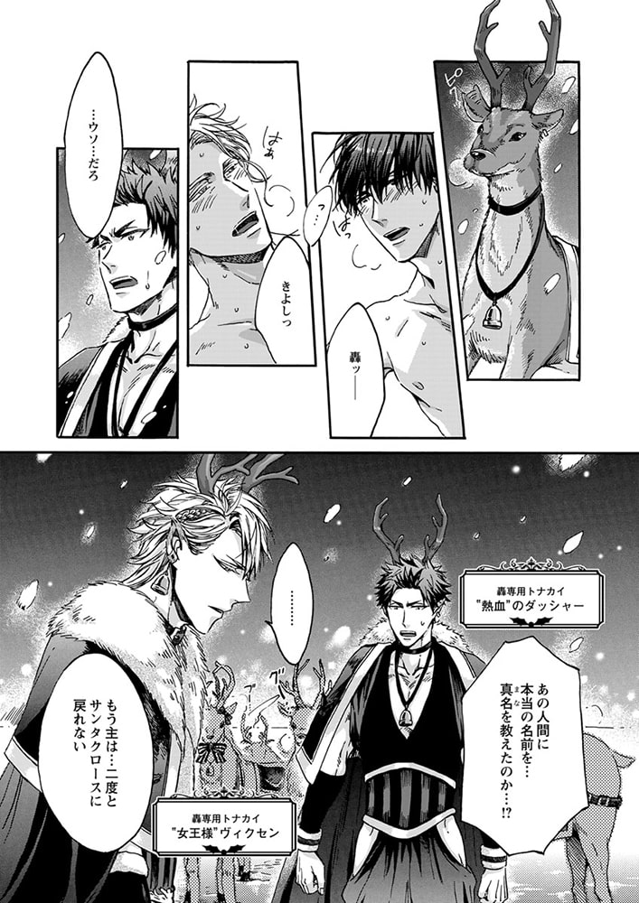 「クリスマス・プレゼントを届けに来たんだ。俺は君の思い描く『理想の恋人』だからーー。」森平喜義(キヨシ)はクリスマスを恋人と過ごせたことがない。甘いロマンチックな聖夜を一緒に過ごすことを夢見ているのに、今年もイヴ直前に恋人にフラれてしまった。ところが、傷心するキヨシの前に、謎のサンタが現れる。「ロマンチックなクリスマスを共にする、理想の恋人が欲しいんだろう?」突然のことに驚きつつも、彼の端正な容姿や、自分の願いを受け止めてくれる深い優しさに心惹かれたキヨシは、サンタとイヴの夜を共にする。ところが、サンタには『とある秘密』があって――? クリスマスの出会いから始まった、ちょっと不思議でハートフルなラブストーリー!