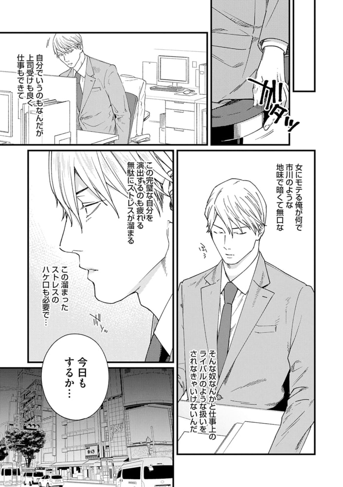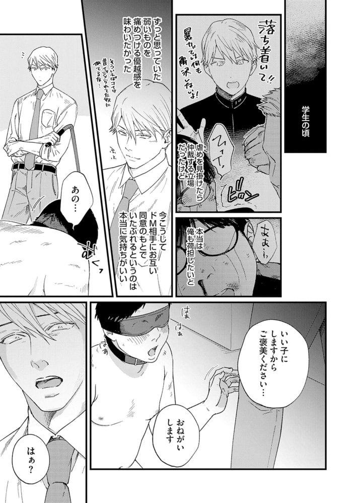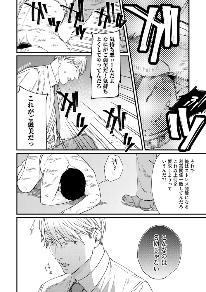 二重人格的な性格で超プライドの高い男ゆえに完璧なサラリーマンを演じる事のストレスをSM倶楽部に通う事で解消している。「豚野郎のくせに日本語しゃべりやがって!」と罵りながら全裸のM男のケツを鞭で叩いて苛めまくる快感に溺れる毎日。