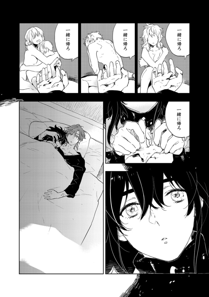 ヒトも売買対象にある現代。アクマと呼ばれる赤毛の彼は、絶対に許せない「買い主」たちを裁く「正当防衛」を理念とする救済者。そんな彼はある日、残された性玩具と目が合う。拘束具で縛られ、両膝を開ききってる彼・スイは「一緒に帰ろ」と微笑むアクマが差し伸べた手を…。「悪魔のような救済者」×「性玩具的扱いをうけてきた無垢」の優しい(←重要)救済逆調教