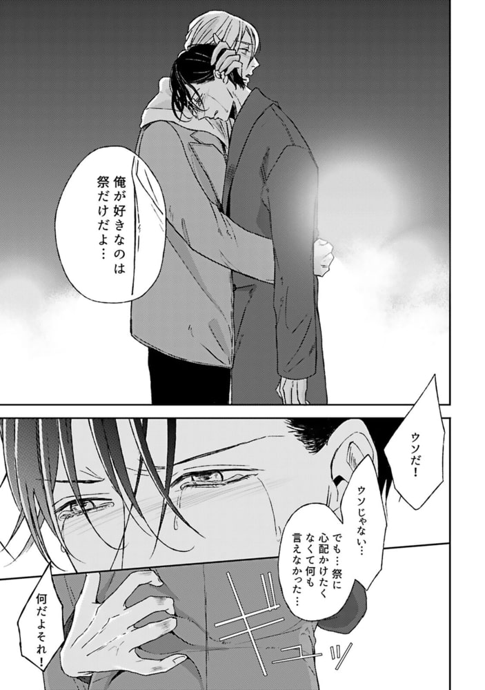 「中学2年!俺、そん時からお前のこと好きだから」5年間付き合った彼氏と別れたバイの侑吾。それを学生時代からの親友でゲイの祭に話を聞いてもらっていたら、突然祭から「5年間ずっと後悔してたからもう遠慮しない」と宣言され、告白される。それからというもののマメな連絡や自宅へのお誘い、家での待ち伏せ等…宣言通り、ぐいぐいと祭が迫ってきて!?だけどタチ同士なことを気にしてか体の関係は二の次でいいから…と言われ、今までクールなイメージだっただけに、自分にだけ見せる必死な姿が段々可愛く思えてきた侑吾は…?