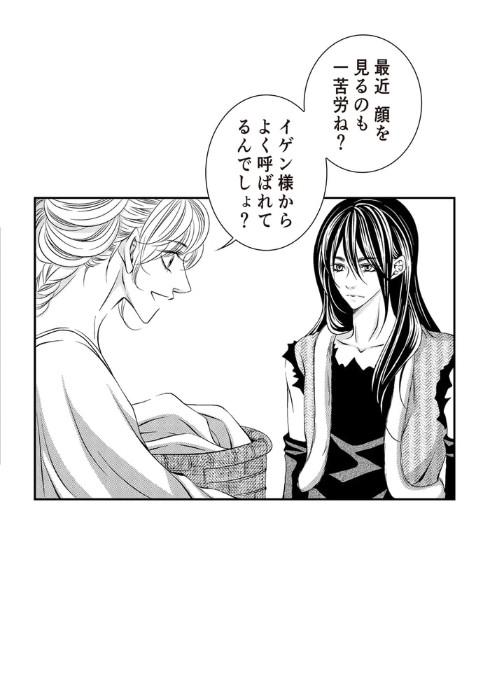 家族を皆殺しにした張本人がイゲンであるということをまだ知らないカサンは、彼の湯浴みの世話をする奴○となり、冷血漢とばかり思っていたイゲンに得体の知れない魅力を感じ、徐々に惚れ込んでいく。