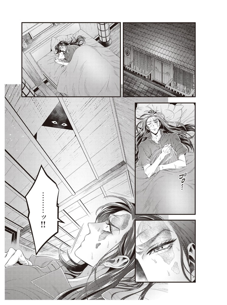 深夜に天井裏から覗く誰かと目が合ったしまったと恐怖するナナオ。